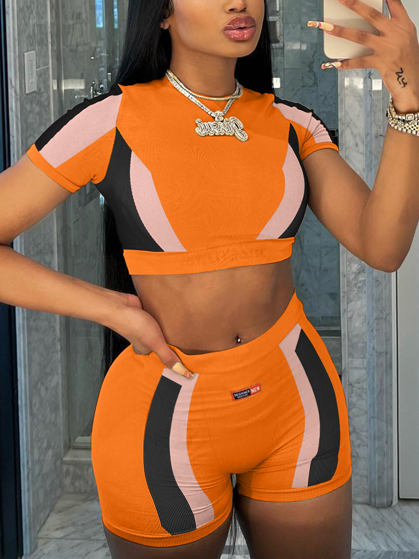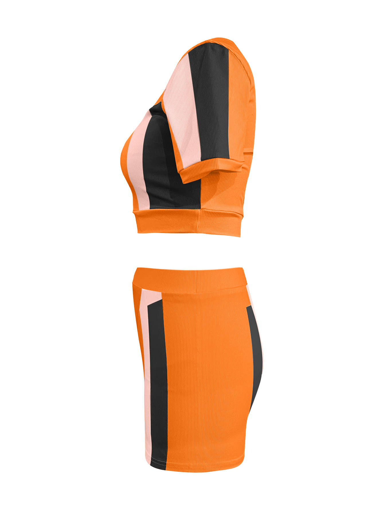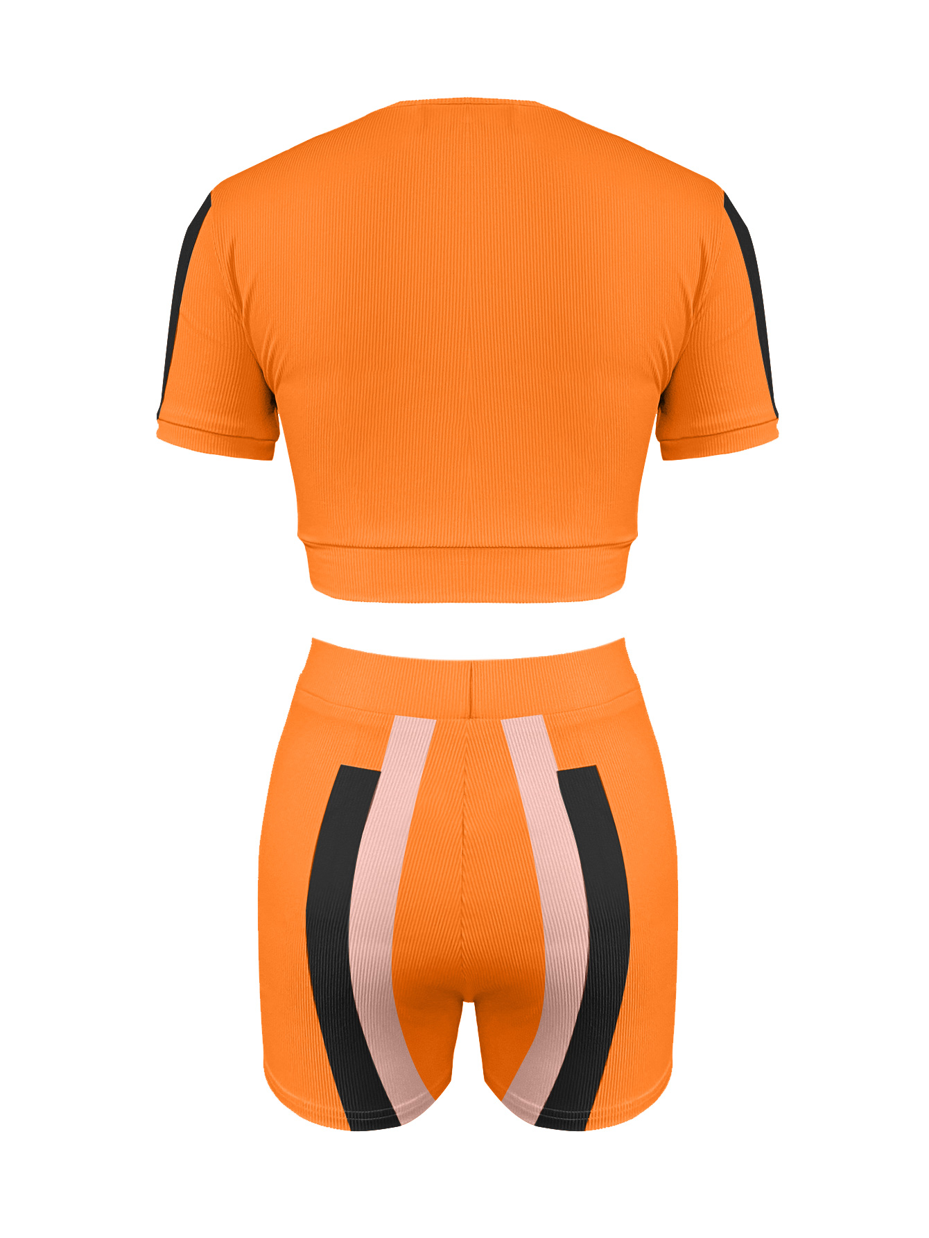 LW Crop Top Color Lump Patchwork Shorts Set.