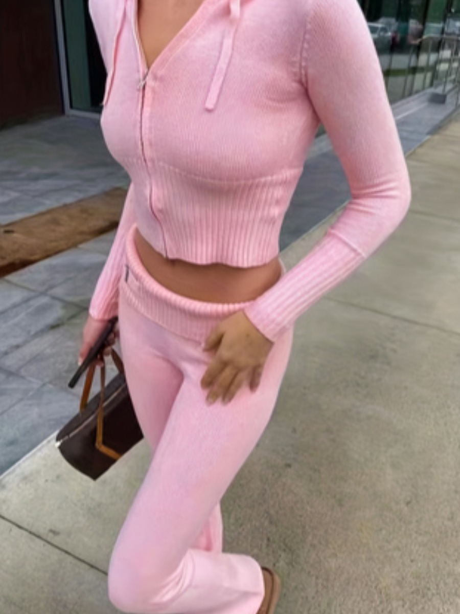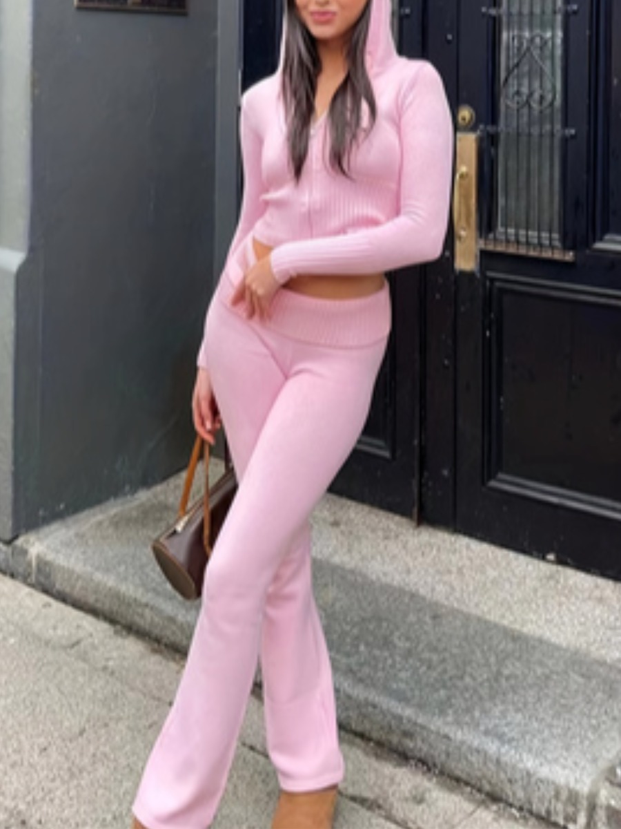 LW BASICS Drawstring Solid Color Two-piece Pants Set.