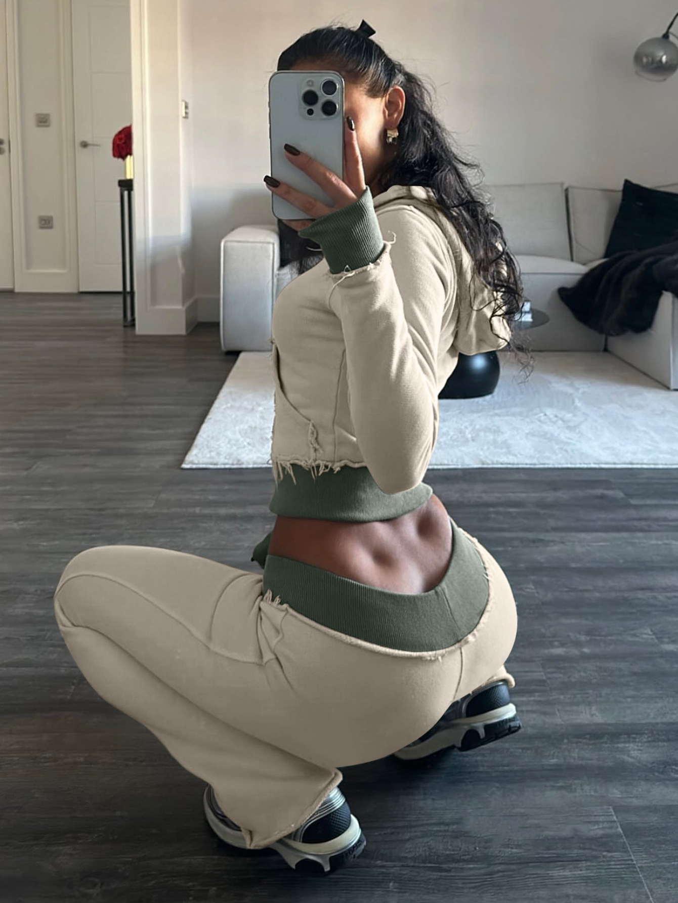 LW Casual Sweat Hooded Collar Pocket Design Solid Color Long Sleeve Two-piece Pants Set.