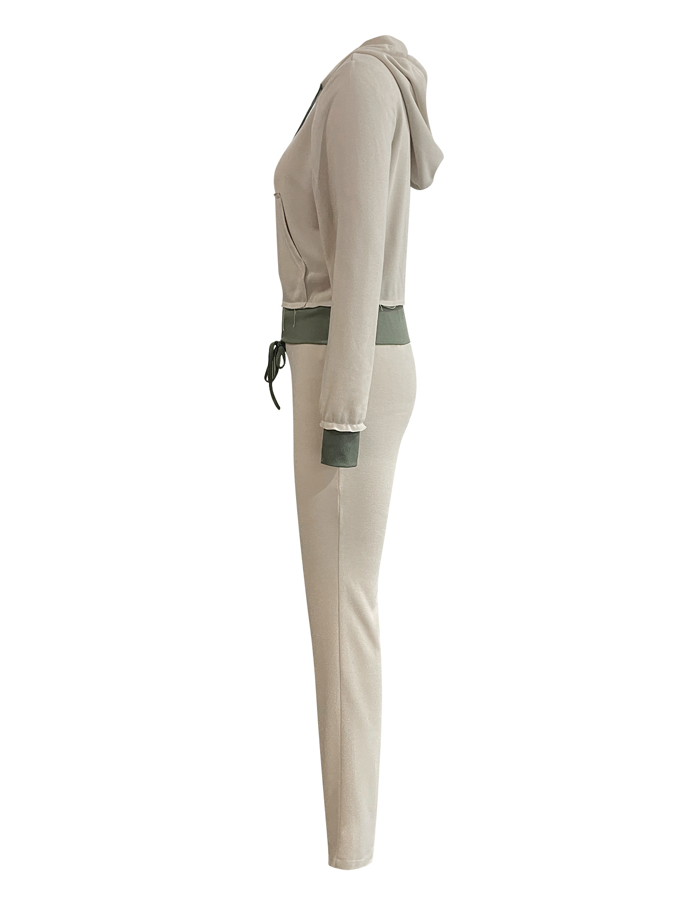 LW Casual Sweat Hooded Collar Pocket Design Solid Color Long Sleeve Two-piece Pants Set