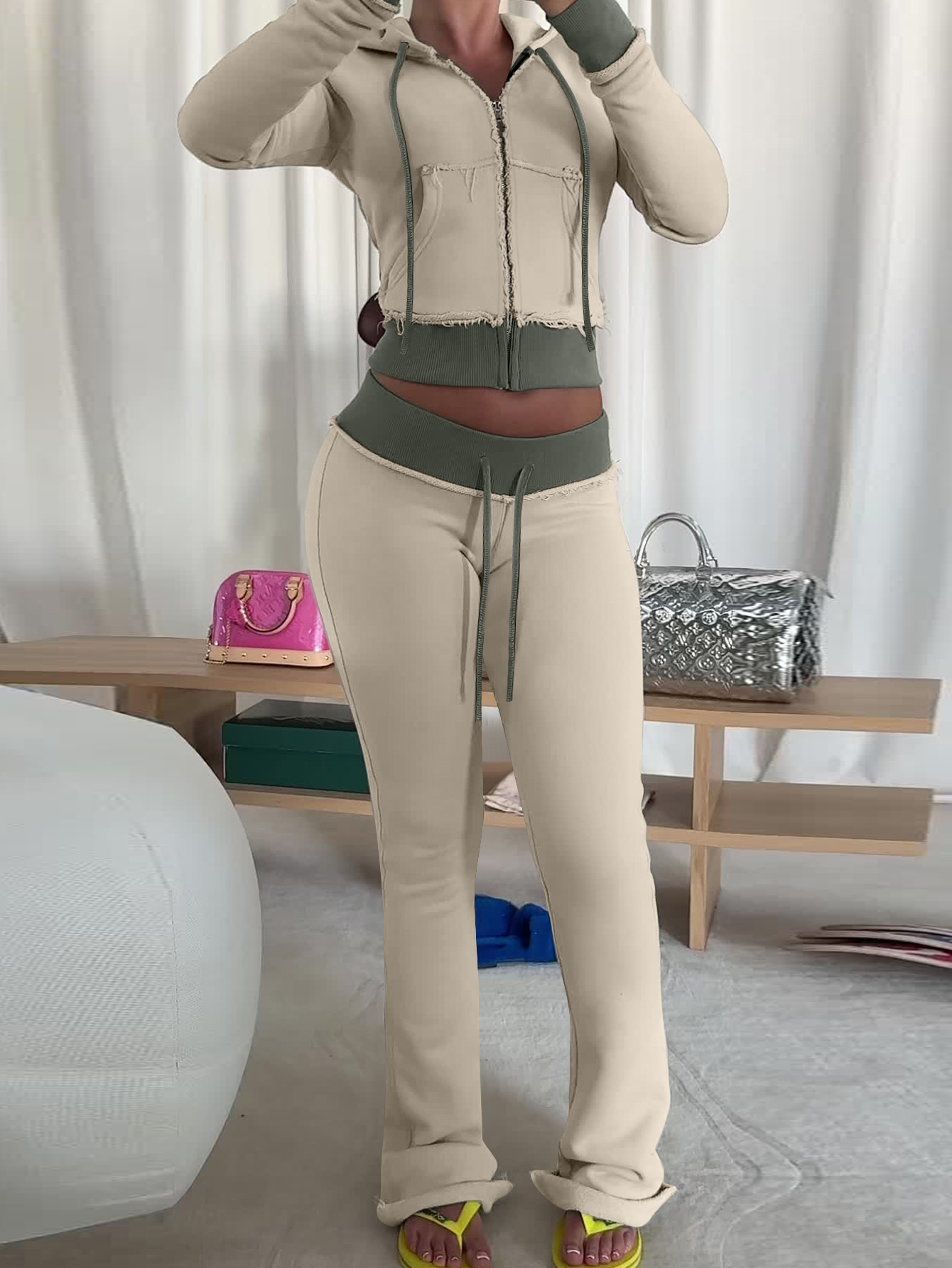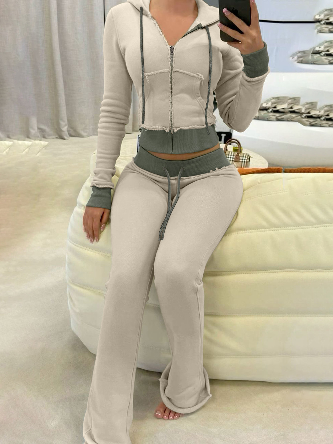 Buy LW Casual Sweat Hooded Collar Pocket Design Solid Color Long Sleeve Two-piece Pants Set for $23.00 at @  Lovelywholesale.com