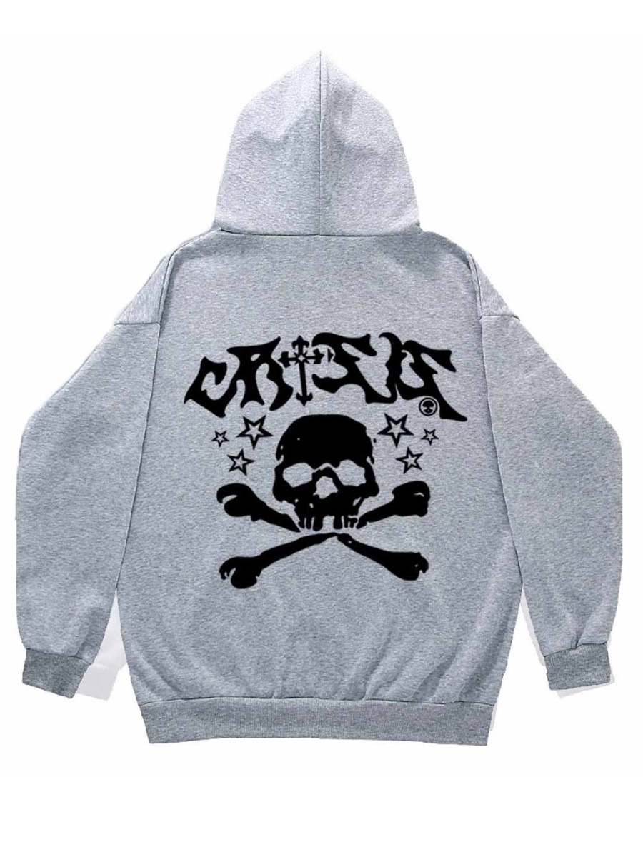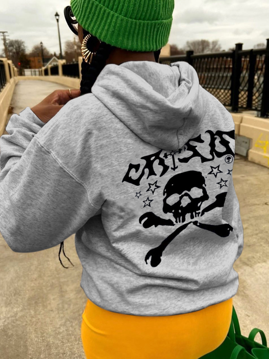 LW Plus Size Skull Head Star Print Kangaroo Pocket Jacket.
