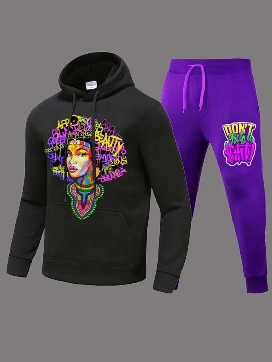 Buy LW Plus Size Figure Letter Print Kangaroo Pocket Tracksuit Set for $17.39 at @ Lovelywholesale.com