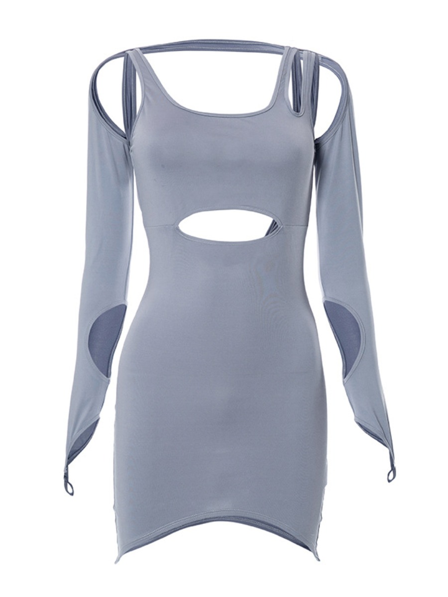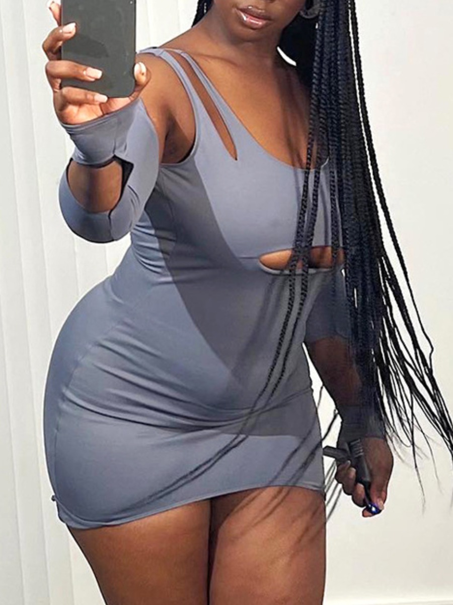 LW SXY Cut Out Solid Color Blue-grey Mini Dress