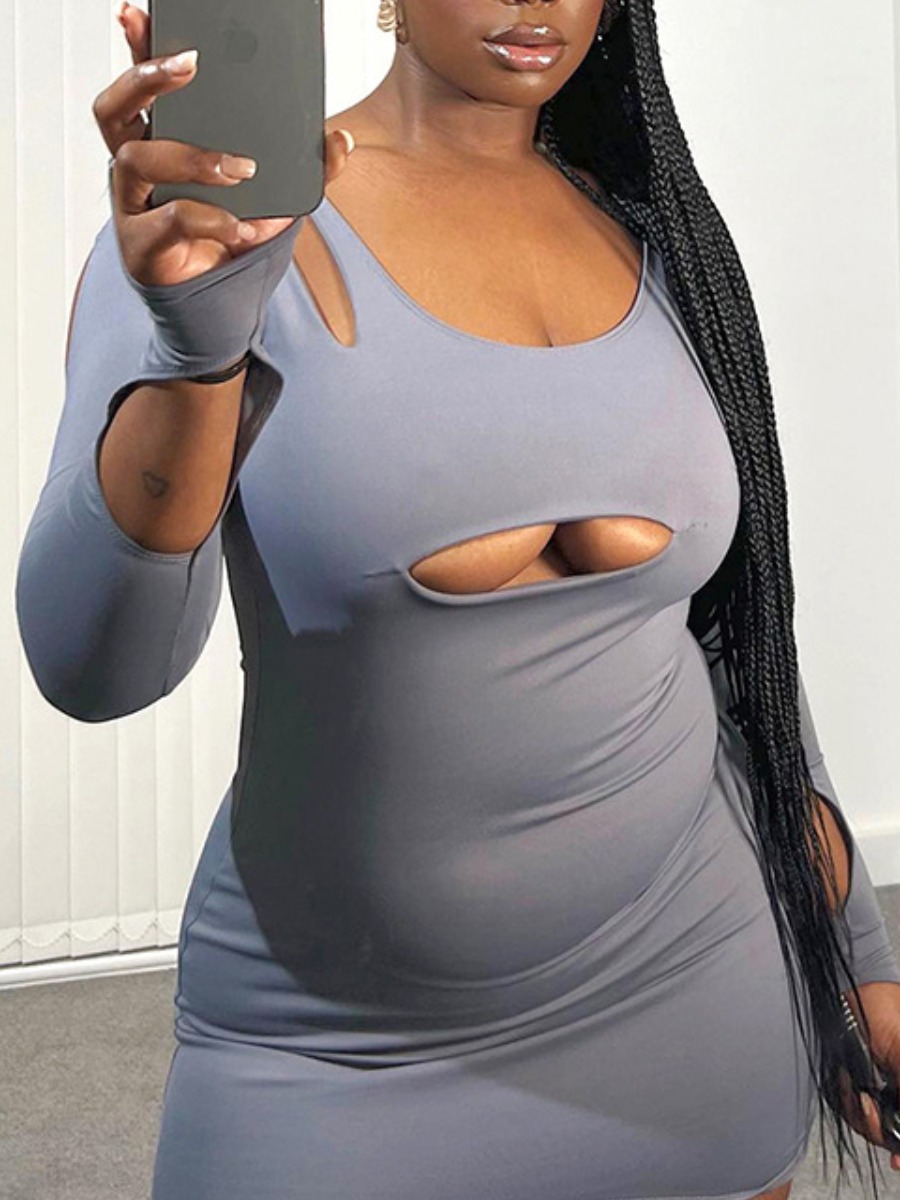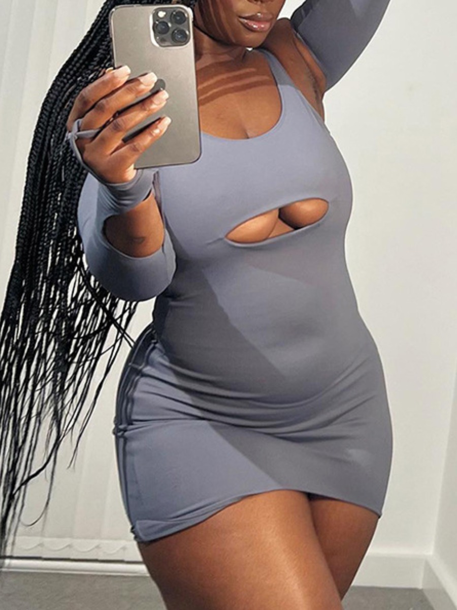 LW SXY Cut Out Solid Color Blue-grey Mini Dress.
