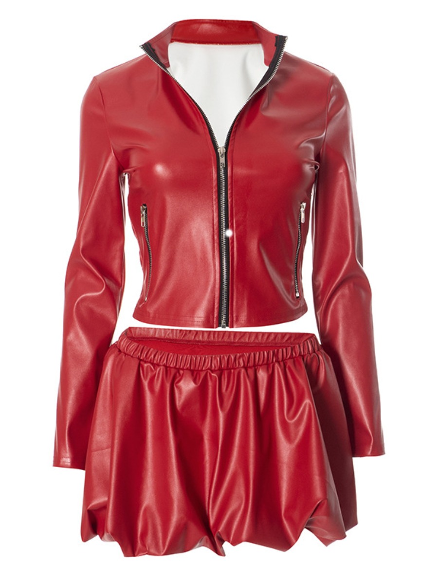 Buy LW Street Polyester Round Neck Zipper Design Solid Color Long Sleeve Two-piece Skirt Set for $31.79 at @ Lovelywholesale.com