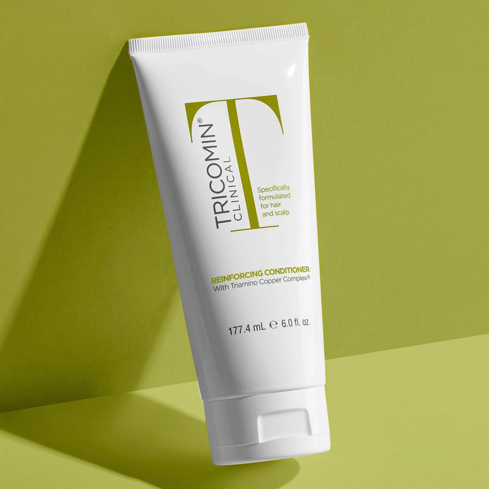 Restore your hairs beauty and softness with Tricomin Clinical Reinforcing Conditioner. This moisture-rich formula reinforces every strand strengthening it to the core to minimize breakage and prevent split ends. Formulated with Triamino Copper Complex this patented peptide blend is essential for maintaining the health of your hair and scalp for soft manageable and absolutely healthy hair youll love. Benefits: Reinforces and strengthens hair from within Minimizes breakage and split ends Patented blend of copper peptides and amino acids Improves hair and scalp wellness for better hair health [ 6 fl oz / 177.4 mL ].
