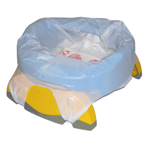These refills fit the On the Go Potty and the Potette Plus. There's an absorbent pad in every plastic liner; you just tie it up and toss it like a diaper.
