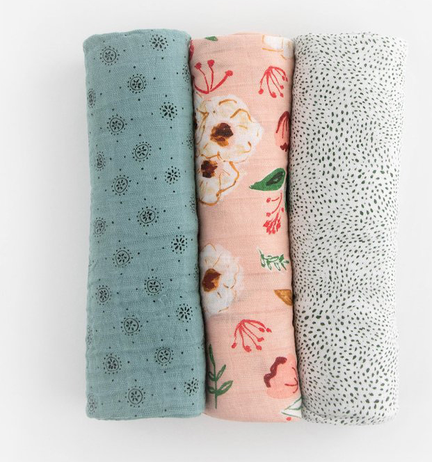 One to swaddle, one to cuddle, one to nurse! Featuring three hand-painted prints that fit your unique style, our swaddles are crafted in lightweight and breathable cotton muslin and get softer with every wash. 100% Cotton muslin; Set of three 47" x 47" swaddling blankets; Lightweight and breathable; Softer with each wash; Original prints to fit your unique style; Please note that slight variations in the richness and depth of color in our prints may occur due to the nature of our manufacturing process.;.