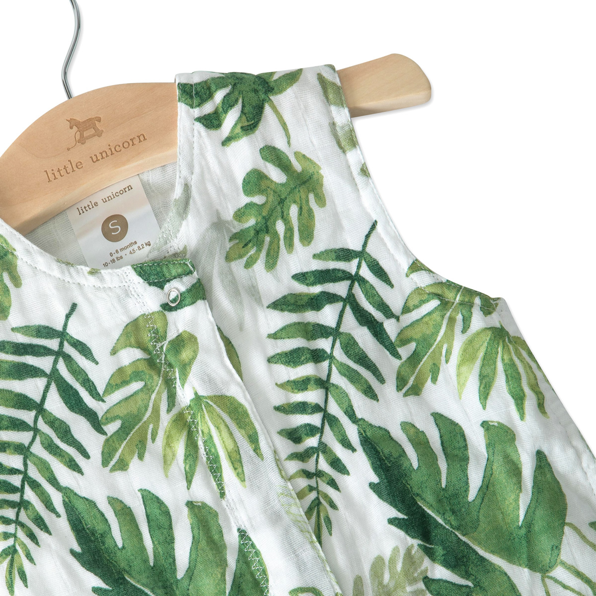 Little Unicorn Cotton Muslin Sleep Bag, Small - Tropical Leaf