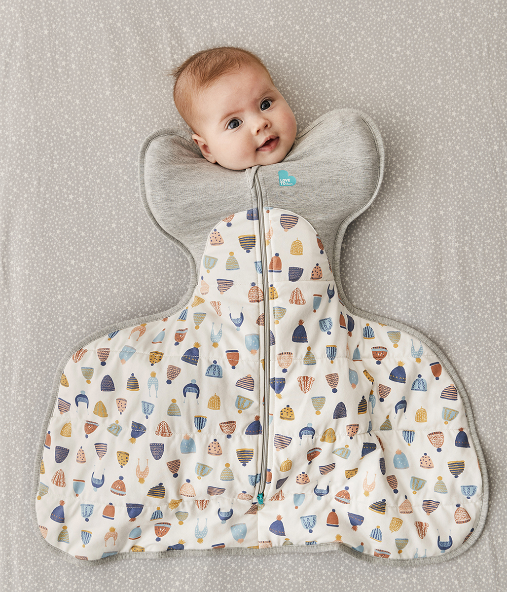 Buy Love To Dream Swaddle UP Designer Collection Hip Harness Quilted Cotton 2.5 TOG, Small - Happy Hats White for $47.95 at @ Albeebaby.com