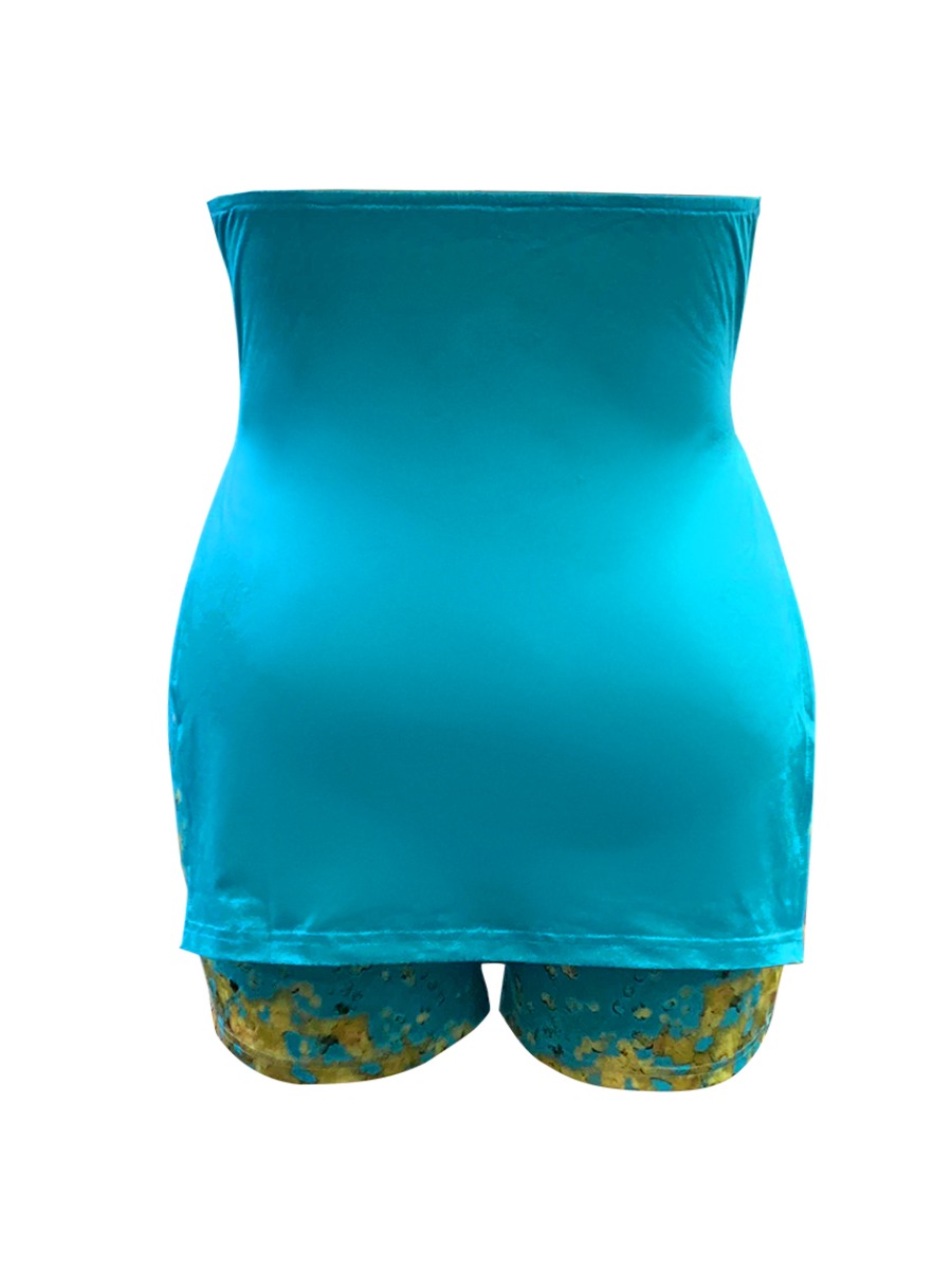 LW SXY Plus Size Off The Shoulder Print Split Shorts Set.
