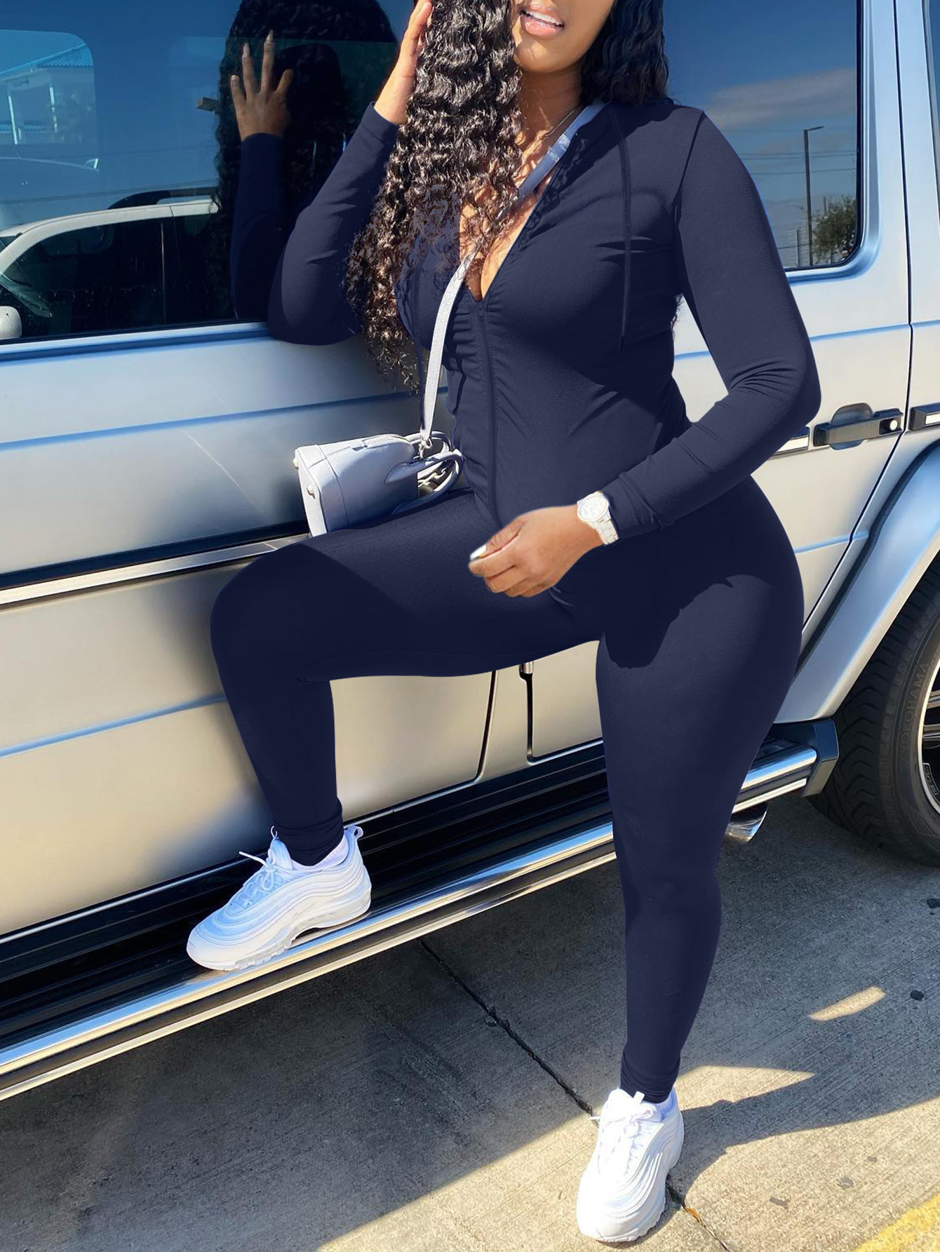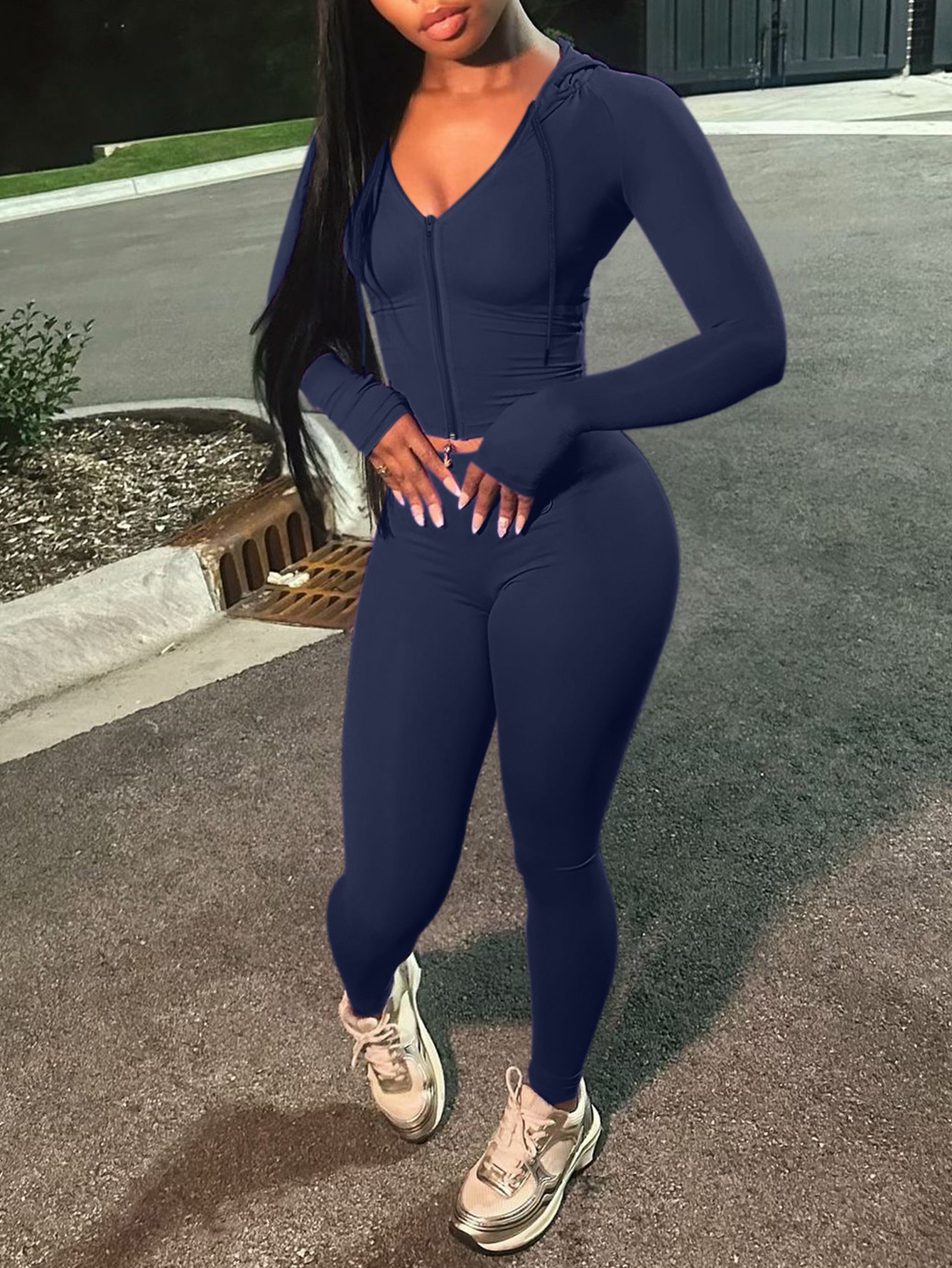 Buy LW Casual Milk Fiber Hooded Collar None Solid Color Long Sleeve Two-piece Pants Set for $17.39 at @ Lovelywholesale.com