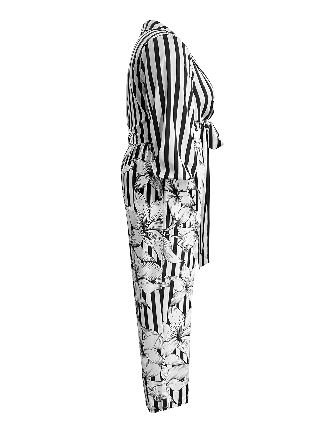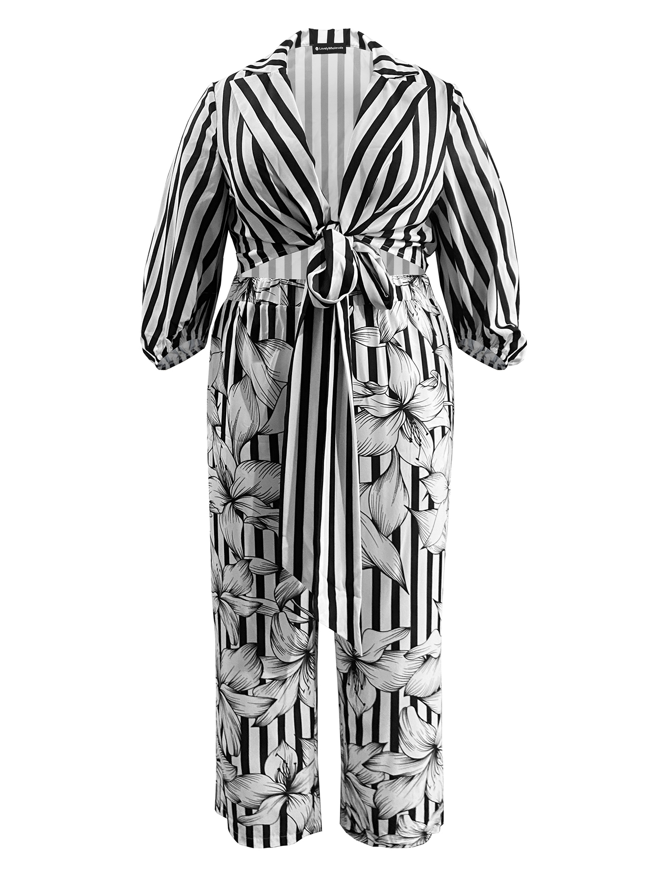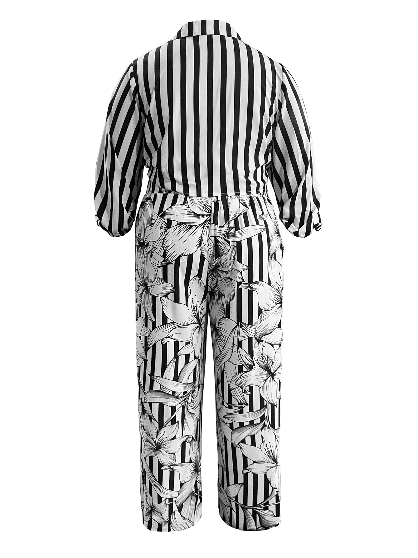 LW BASICS Plus Size Color Contrast Two-piece Pants Set.