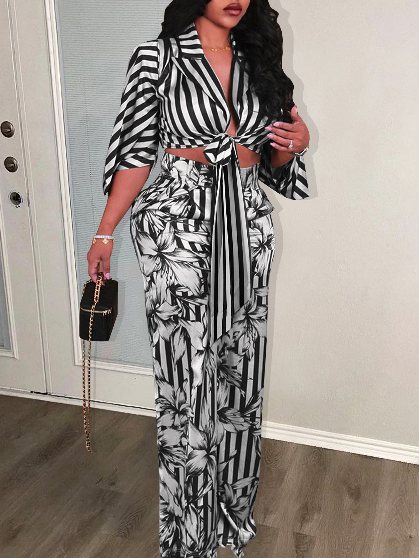Buy LW BASICS Plus Size Color Contrast Two-piece Pants Set for $29.09 at @ Lovelywholesale.com