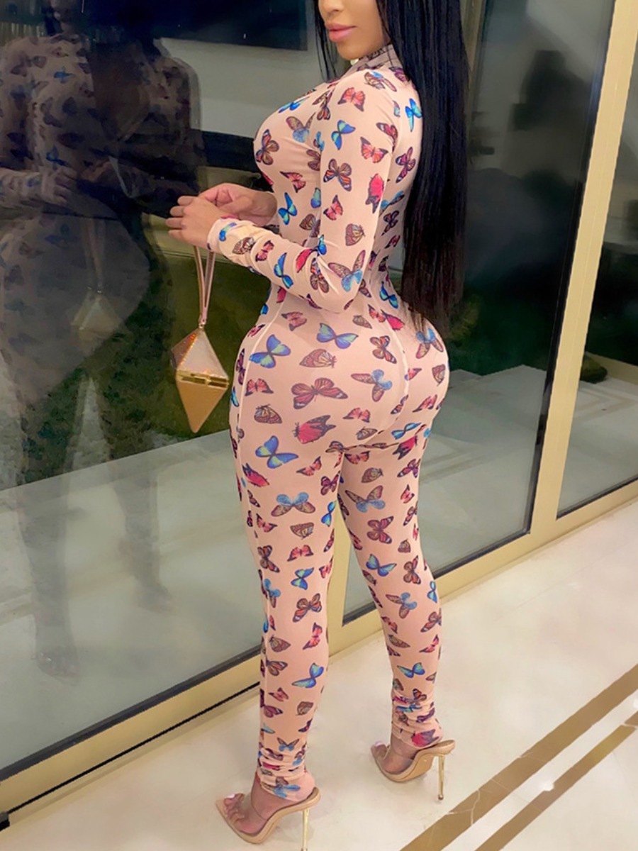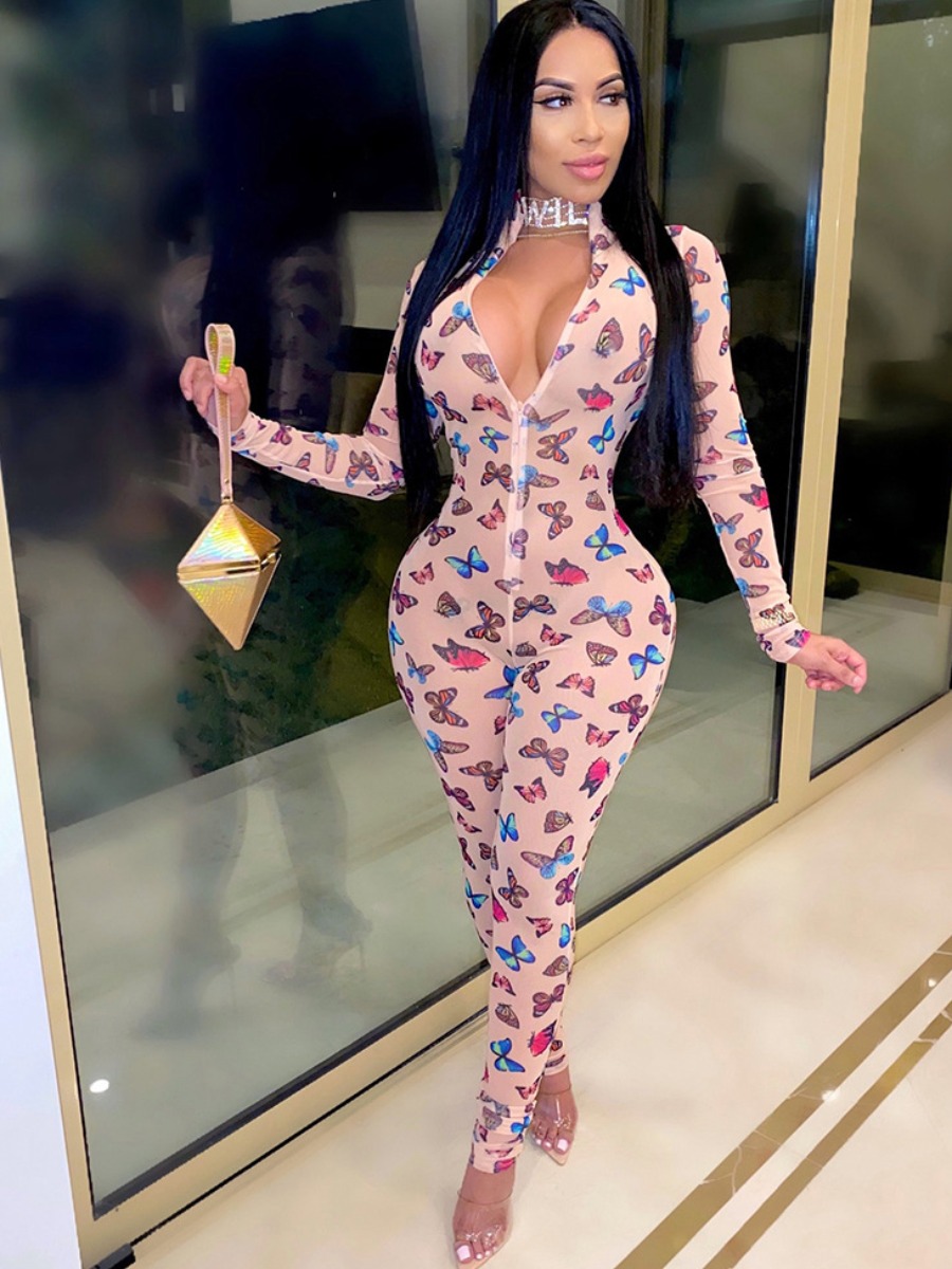 Buy LW Butterfly Print Button Design Jumpsuit for $17.99 at @ Lovelywholesale.com