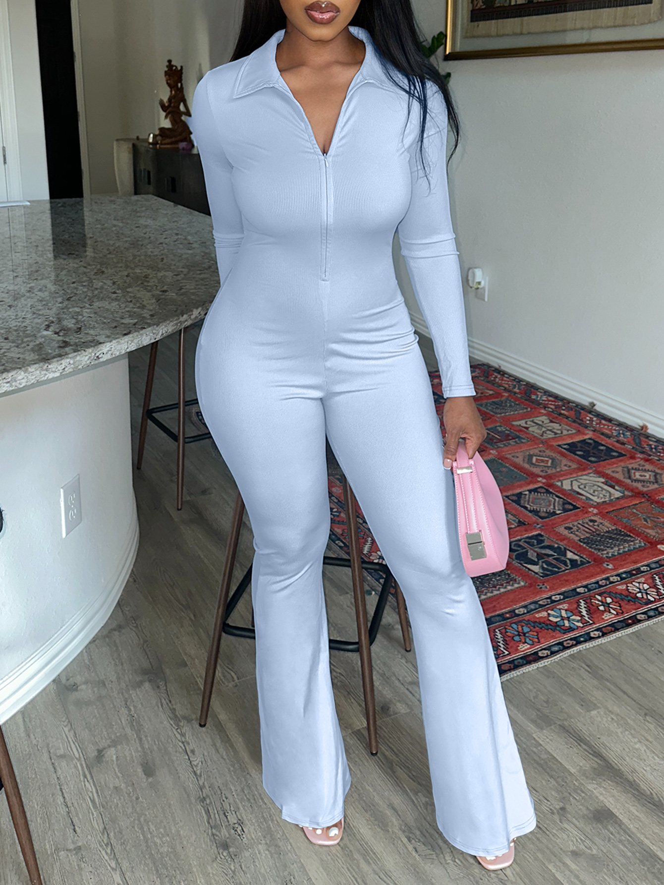 Buy LW Zipper Design Skinny Flared Jumpsuit for $16.79 at @ Lovelywholesale.com