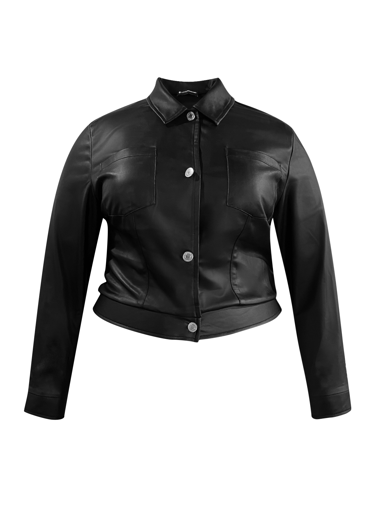 LW Plus Size Pocket Design Solid Color Leather&Faux Fur.