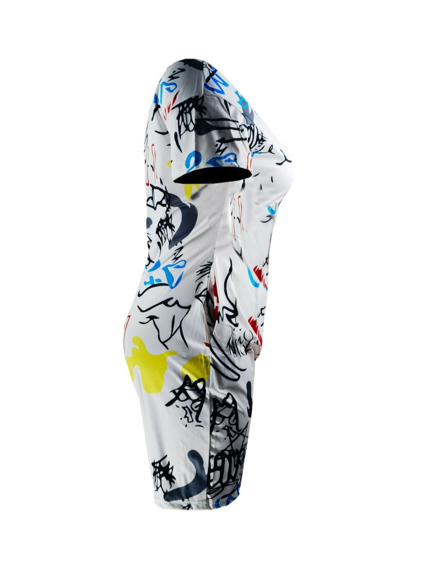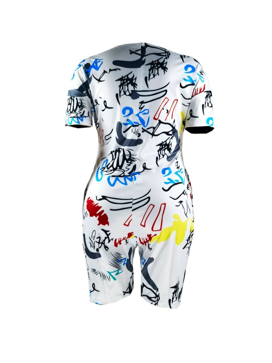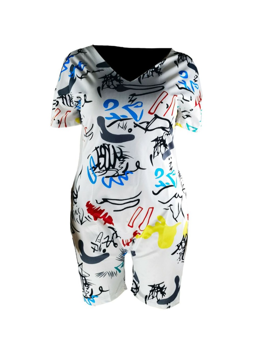 LW Plus Size V Neck Graffiti Letter Print Romper.