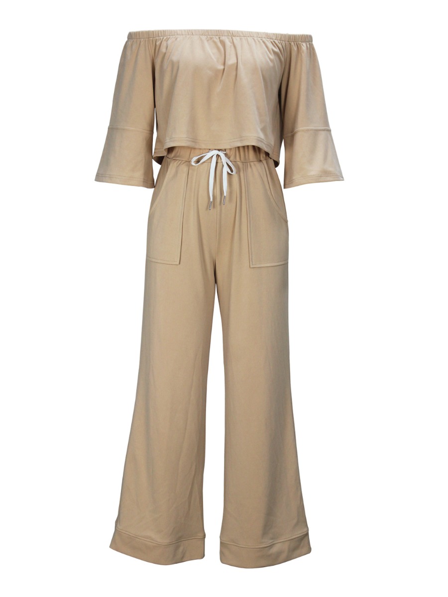 LW Bandage Design Solid Color Two-piece Pants Set.