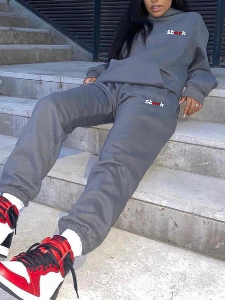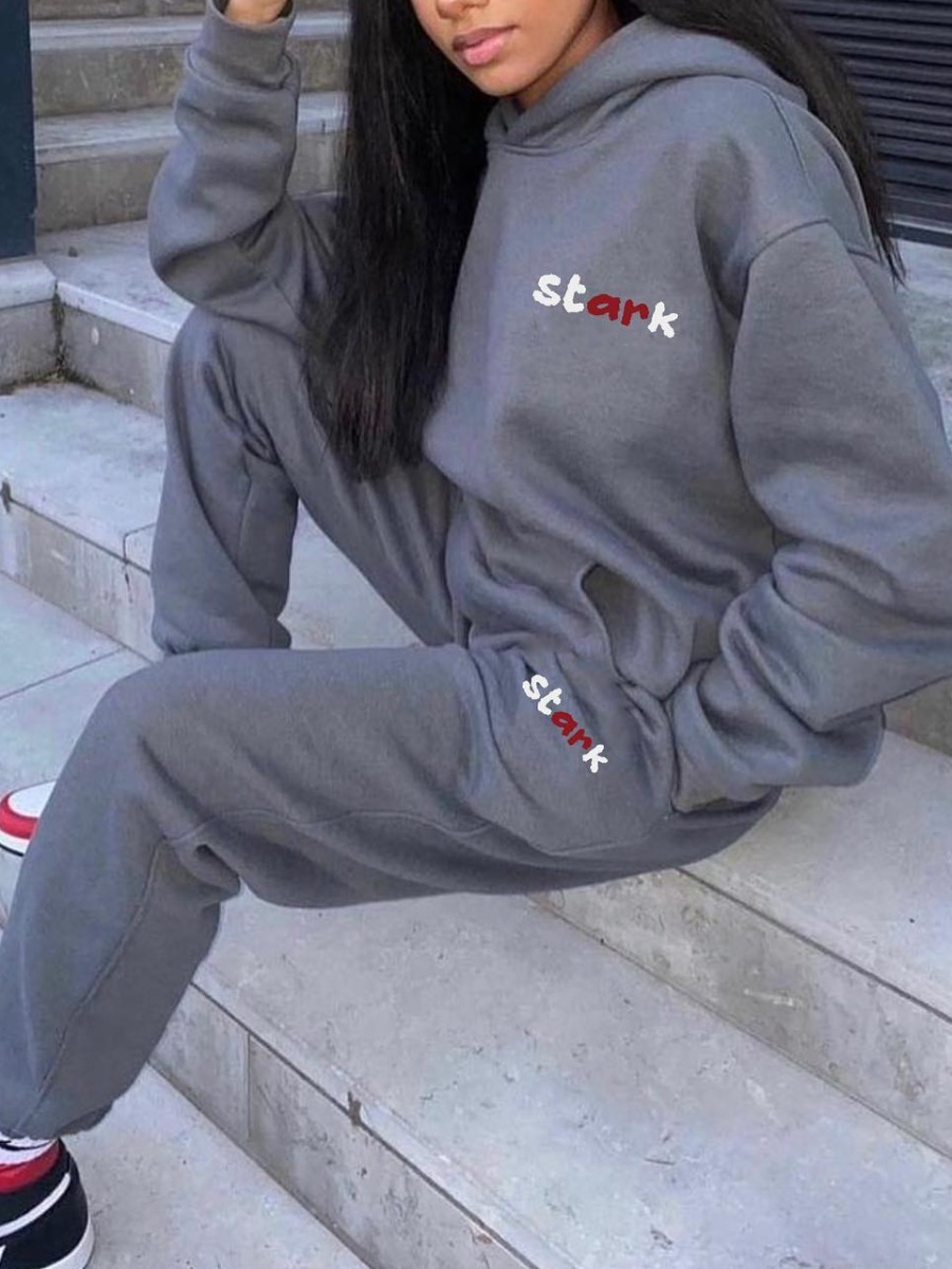 Buy LW Street Polyester Hooded Collar Pattern Letter Long Sleeve Two-piece Pants Set for $17.39 at @ Lovelywholesale.com