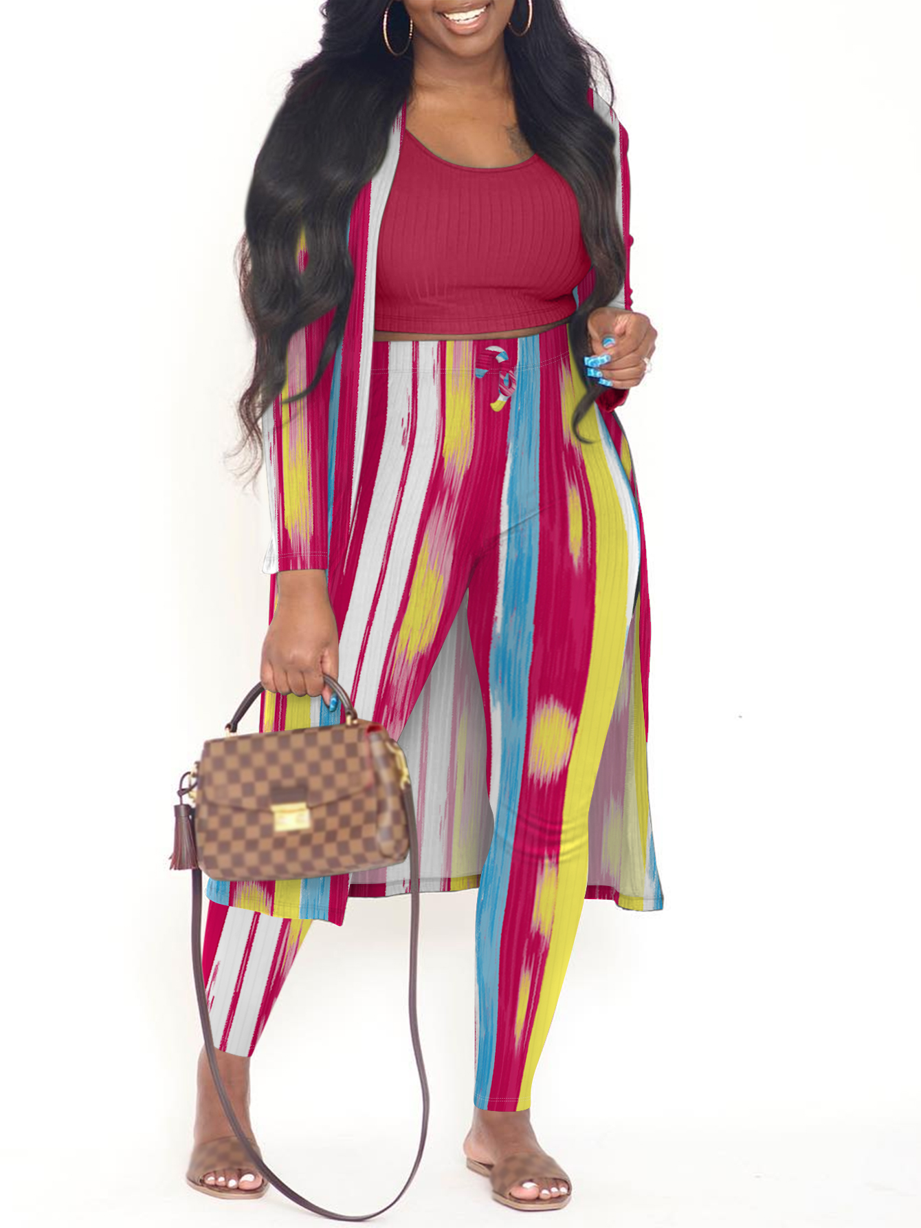 LW BASICS Plus Size Cami Tie Dye Drawstring Three Piece Pants Set.
