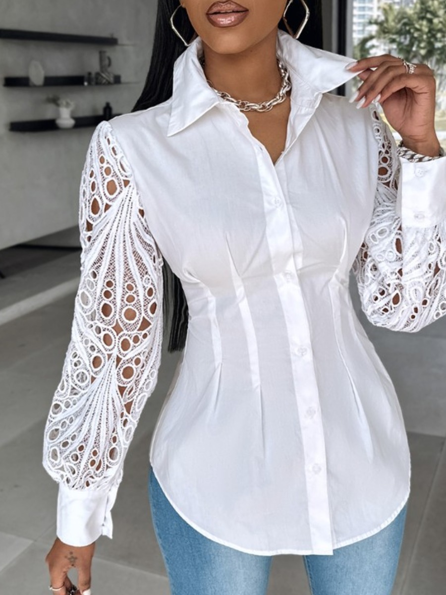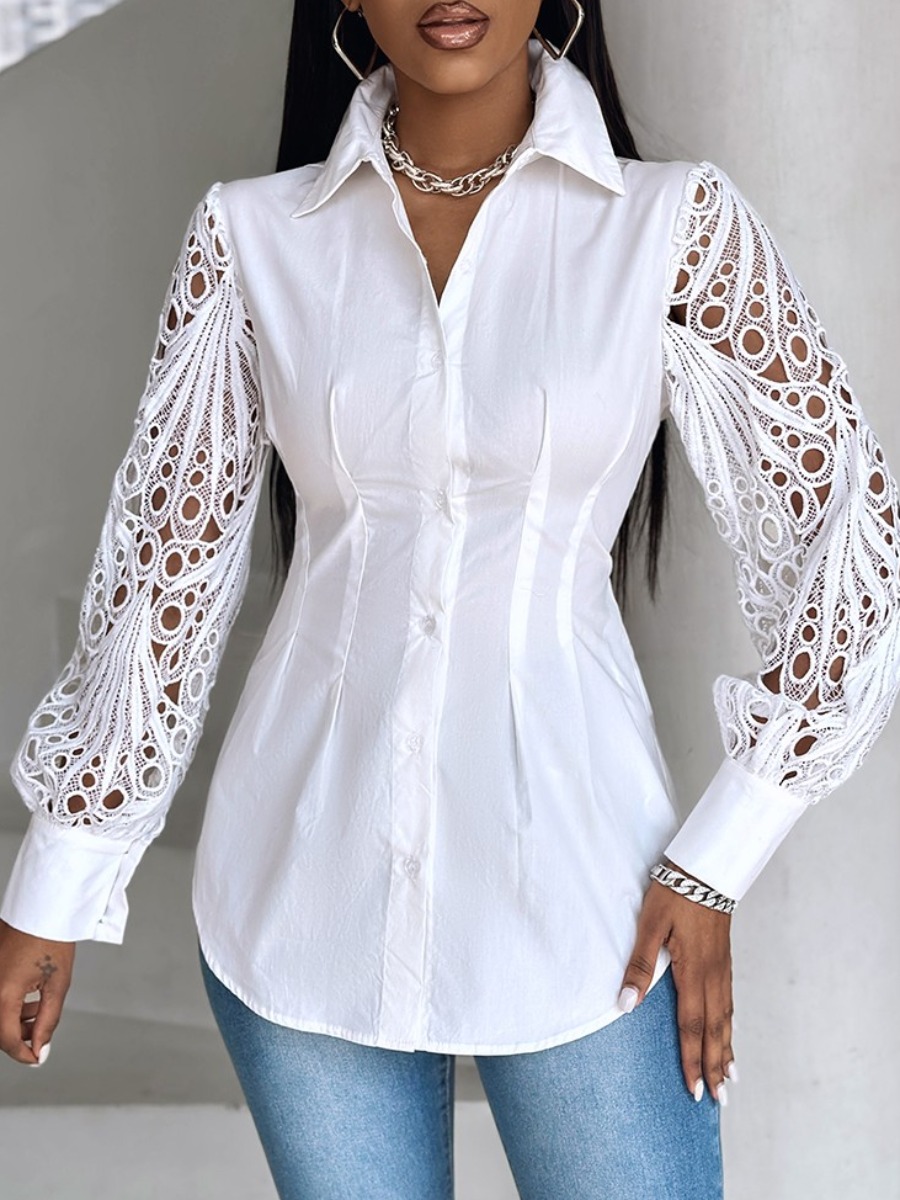 Buy LW Lace Patchwork Solid Color Shirt for $24.89 at @ Lovelywholesale.com
