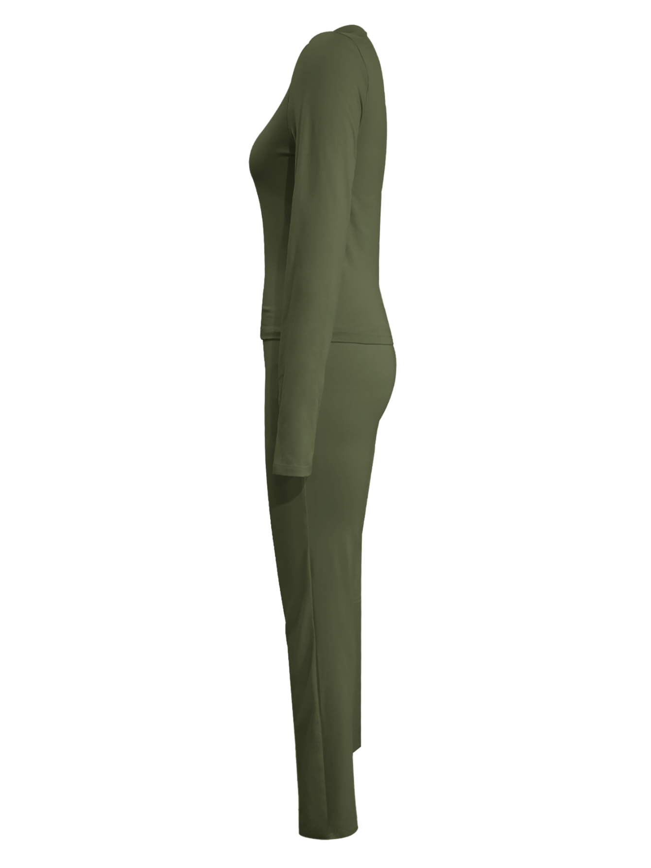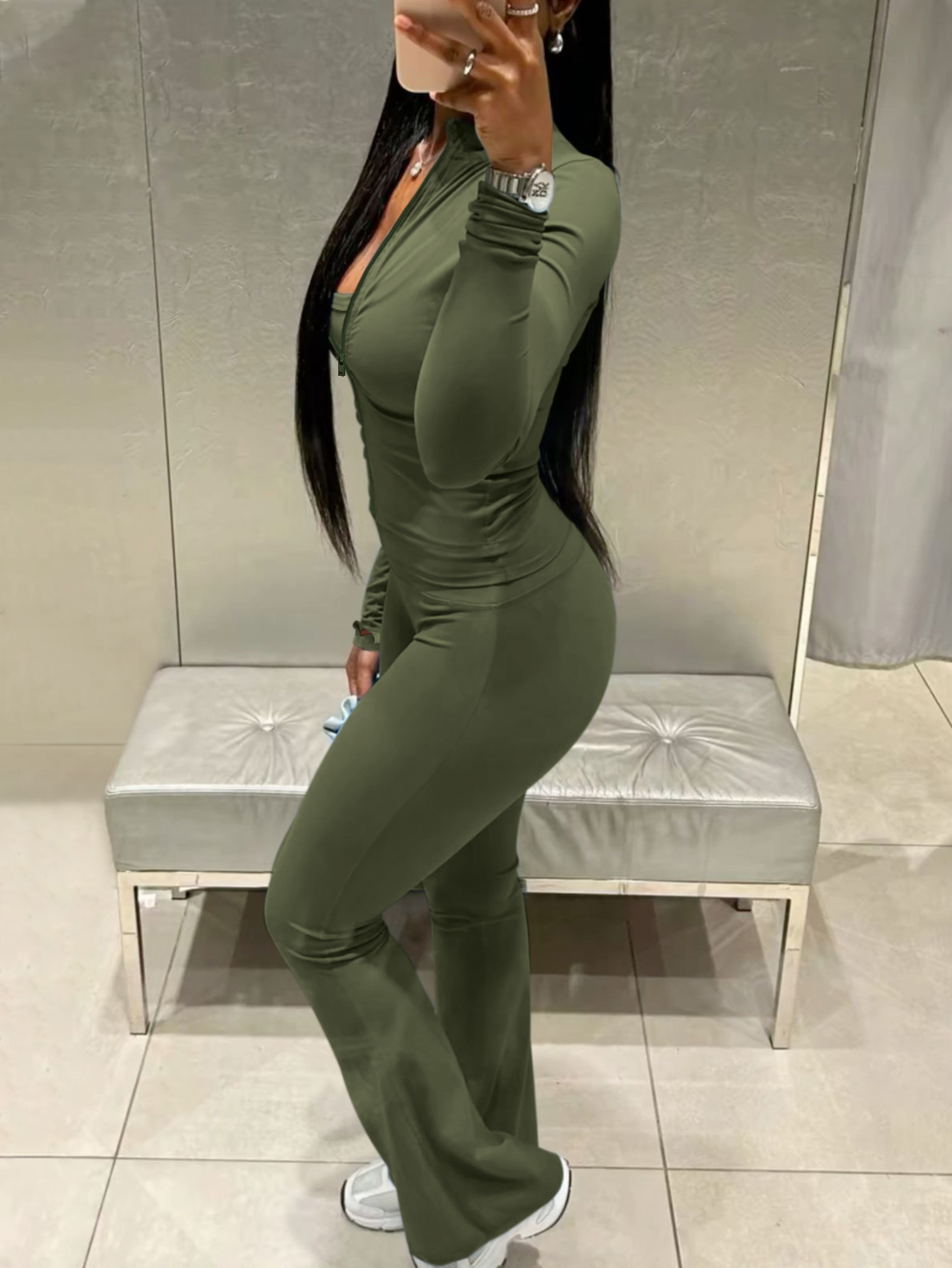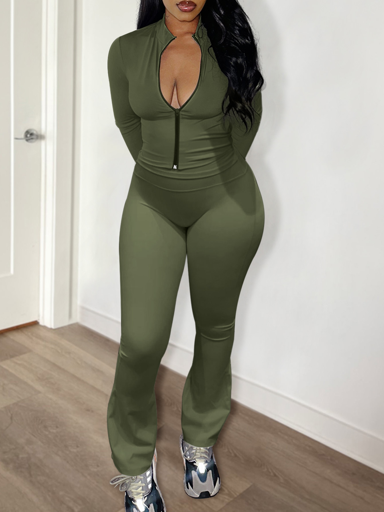 LW BASICS Casual Milk Fiber Mandarin Collar Solid Color Long Sleeve Two-piece Pants Set.