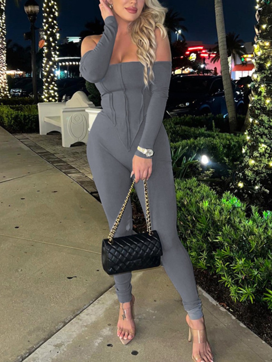 LW Casual Polyester Bateau Neck Solid Color Long Sleeve Two-piece Pants Set