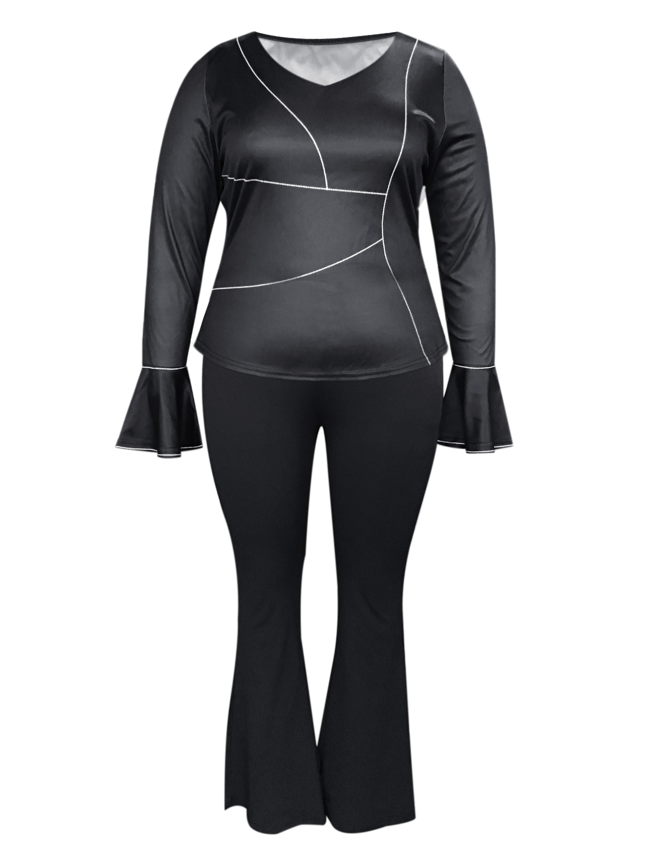 Buy LW BASICS Plus Size V Neck Striped Flared Pants Set for $19.79 at @ Lovelywholesale.com