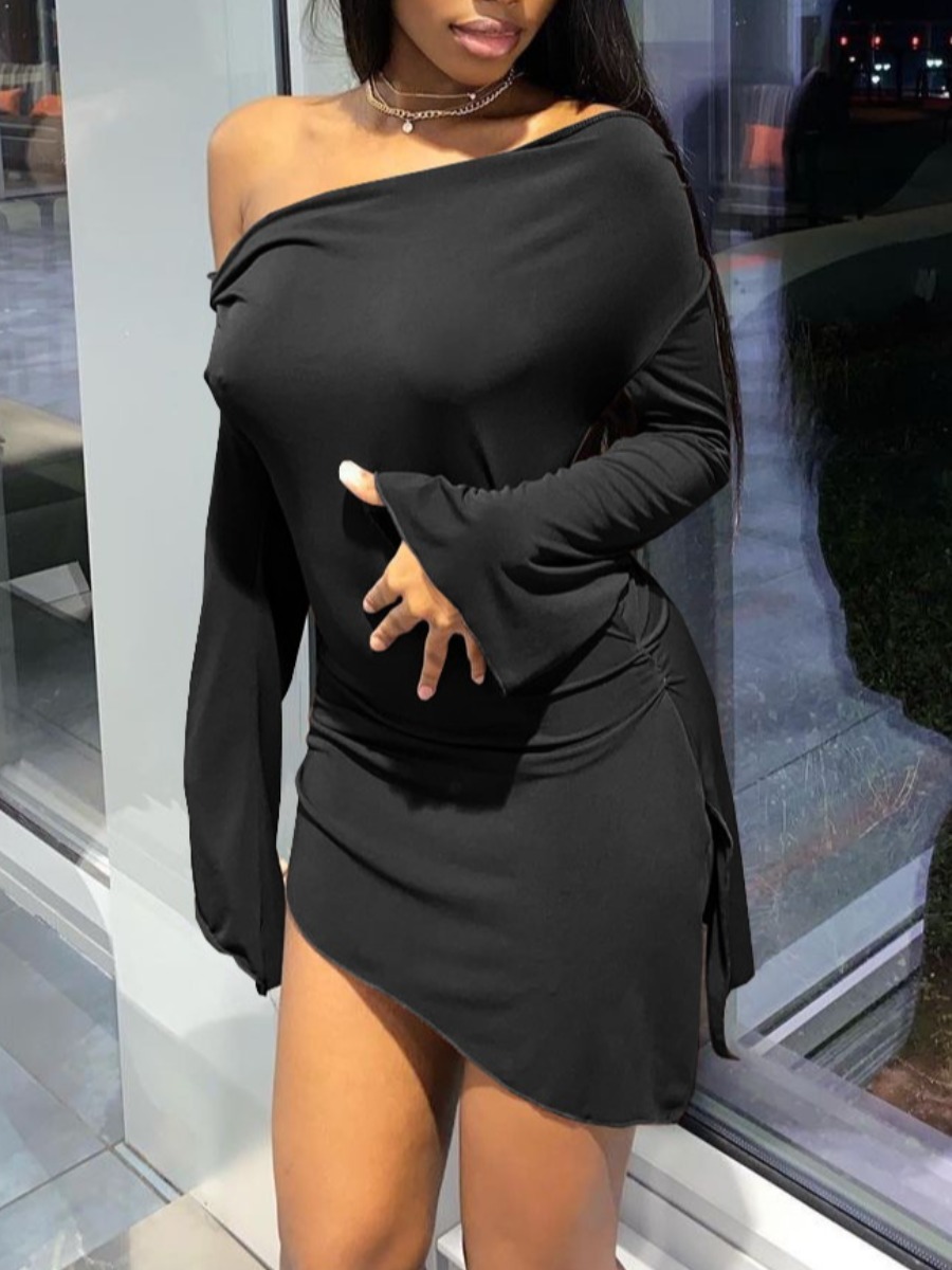 LW Asymmetrical Split Solid Color Mini Dress.