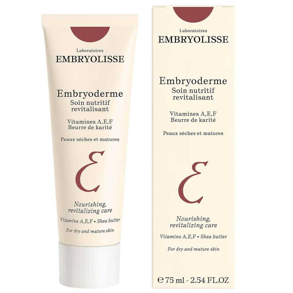 Nourish and moisturize the outer layers of skin with Embryolisse Embryoderme. This revitalizing cream features potent vitamins to help give skin the nutrition it needs for its best health along with moisturizing agents from natural elements that help it repair. Say goodbye to dryness and discomfort as collagen and elastin help reinforce your skin and brighten and tone it up. With a rich texture it feels soothing when applied to skin leaving it feeling smooth soft and supple with revitalizing care youll notice on contact. Benefits: Nourishes and revitalizes outer layers of skin Restores skin to prevent dryness and discomfort Helps skin stay stronger Brightens and tones Soothing texture that leaves skin soft smooth and supple [ 2.54 fl oz ].