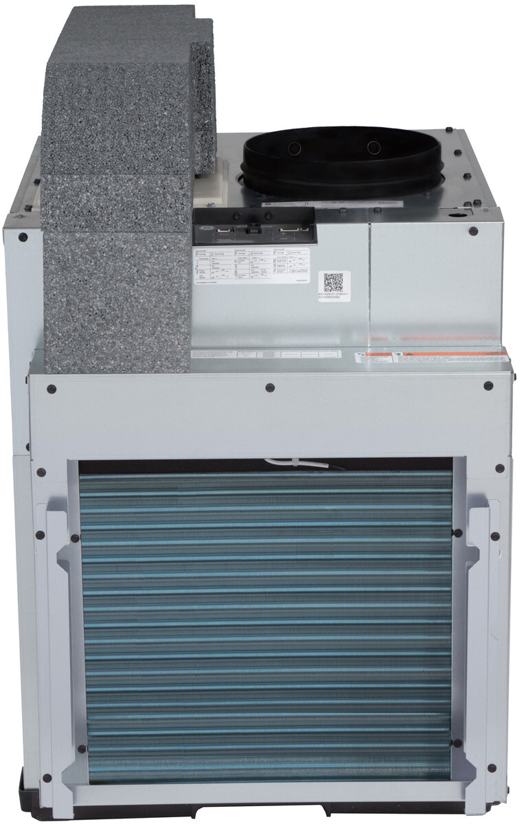 12,100 BTU UltimateV12 Heat Pump Single Package Vertical Air Conditioner with Reverse Cycle Defrost, Anti-Corrosion, Makeup Air, and Ultra-Quiet. Eliminates the need for on-site customized platform construction saving time and money. Easy installation allows for simple chassis removal while leaving plumbing completely intact. Plenum is easily installed from the interior of the building, without the need for exterior building access. Caulking is required. It conveniently expands from 8" to 15" for a custom fit. Electronic controls give clear and fast diagnostics data and fault codes, for fast and easy resolution. Delivers quiet cooling power with a smooth sound for a good night's sleep. The variable speed compressor and advanced defrost capability allow for the best heat pump operation down to 0 F. Exclusive rust-proof basepan and bulkhead provide another level of corrosion protection to ensure lasting performance in challenging environments. Variable speed operation provides an advantage with shorter recovery time, improved efficiency, sound quality and dehumidification. Consistent room temperature allows for total room comfort. Makeup air and customizable variable speed fan technology provide the precise airflow for specific applications. Fast-Connect Plumbing. Self-Aligning Lock-in-Place System. SmartHQ WiFi capability. 3 Cooling Fan Speed. Auto Compressor Random Restart. Boost Heat. Thermostat Quick Disconnect. Freeze Sentinel. Heat Pump with Resistance Heat Backup. Color: Gray. Makeup Air: Yes. Refrigerant Type: R410A. Fan Speed Selections: 3 Cooling. Sensible Heat Ratio: 75%. Remote Thermostat: RAK190V. Heat Sentinel: Yes. Heat Pump: Yes. Power Connection Kit: RAK3XXD Series. Freeze Sentinel: Yes. Corrosion Treated: Yes. Central Desk Control Compatibility: Yes. Rotary Compressor: Yes. Heating - Reverse Cycle - COP: 3.6. Heating System: Heat Pump. Cooling BTUH (MAX): 12100. CFM Indoor Fan Low: 376. CFM Indoor Fan Medium: 417. Cooling EER (BTUH / Watt): 11.6. Heating - Reverse Cycle - BTUH: 11400. Dehumidification (pts./hr.): 3.16. Heating - Reverse Cycle - Watts: 925. Cooling - Amperes: 4.7. Cooling - Watts: 1040. Heating - Reverse Cycle - Amps: 4.3. Voltage (MIN): 208. Voltage (MAX): 230. Parts: Limited 1-year entire appliance, Limited 5-year sealed refrigerating system. Labor: Limited 1-year entire appliance, Limited 5-year sealed refrigerating system. Overall Width: 23 5/8". Overall Height: 31 7/8". Overall Depth: 24 1/8". Net Weight: 137 lbs. Shipping Weight: 150 lbs.