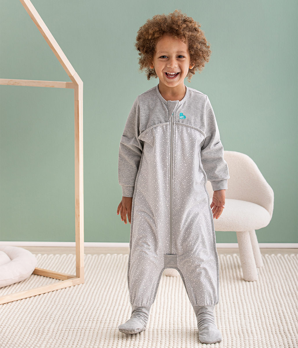The award-winning Love To Dream Sleep Suit is designed to keep little ones warm, whilst providing freedom of movement. A versatile "all-in-one" style wearable blanket with legs, your toddler will sleep great and stay cosy through cold nights. Features: This product is a Love To Dream online exclusive ; Our best selling Original Jersey Knit fabric is now available in Stage 3.; Featuring our classic Stardust print. Our Original jersey fabric is a soft, stretchy knit.; Super soft, comfy and smooth to touch.; Long jersey sleeves help to keep your little one's arms warm; Stretchy for a snug fit across the torso to assist with self-soothing.; Fabric elasticity allows for comfortable, multiple, non-bulky, layering underneath for further insulation.; A great alternative for loose blankets; Twin zipper for easy access and quick nappy change; Longer lasting fit, up to 6+ months for sleep suits; Made to last, wears well and retains shape wash after wash.; Pairs perfectly with our Love to Dream layers for sleep and play; High quality seam finishes including binding on external seams.; All our products are quality & performance tested; Ideal choice for MODERATE room temperatures between 68-81 degrees.; Available in 5 sizes: 6 months, 12 months, 24 months, 3 years and 4 years; Easy care: Machine washable & tumble dryer friendly.; Pull back into shape after washing and after drying.; (Sizes 3 & 4 only) Fire Hazard Labelling: CAUTION; KEEP AWAY FROM HEAT AND FLAME; Fabric Content: 93% Cotton 7% Elastane; Size & Care: Close zipper before washing; Warm gentle machine wash in wash bag with similar colours; Tumble dry on low; Warm iron if necessary; Do not soak or bleach, iron zipper or dry clean; Age & Max Child Height 6-12 M - 33""; 12-24 M - 36""; 24-36 M - 39""; 3 Years - 42""; 4 Years - 45""; Temperature & Clothing Guide Our aim at LOVE TO DREAM is to empower parents to choose the right products from our range that best suit their children's needs. Every baby feels hot and cold differently to another, ambient temperatures fluctuate, and different clothing and sleepwear layer combinations will differ in their thermal effectiveness. These factors make it challenging to give blanket advice to parents and carers. Below is a set of guidelines that helps parents and carers understand the different TOG and additional classifications available at LOVE TO DREAM and their suitability across differing room temperatures: 0.2 TOG - Ideal for WARM room temperatures between 75F to 81F; MODERATE - Ideal for MODERATE room temperatures between 68F to 81F (broader room temperature range than 0.2 TOG, more versatile product); 1.0 TOG - Ideal for MODERATE room temperatures between 68F to 75F; MILD - Ideal for MILD room temperatures between 64F to 75F (broader room temperature range than 1 TOG, more versatile product); 2.5 TOG - Ideal for COLD room temperatures between 61F to 68F; 3.5 TOG - Ideal for COOL room temperatures below 61F; All garments we produce are INPAA approved, as well as certified to the relevant safety standards applicable to those particular garments.