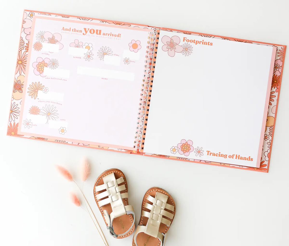 This modern mod-style baby book helps bring our mission to life by giving you a simple (and beautiful!) way to document all the darling moments of baby's first year. Inspired by the 60's style of feminine and fun florals and the notion of embracing your inner flower child - Mom will easily record special memories, without spending hours doing it. Perfect for you or as a gift, this blooming baby book helps mom remember baby's first year forever.