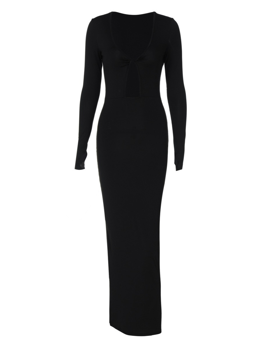 LW BASICS Cut Out Solid Color Maxi Dress.