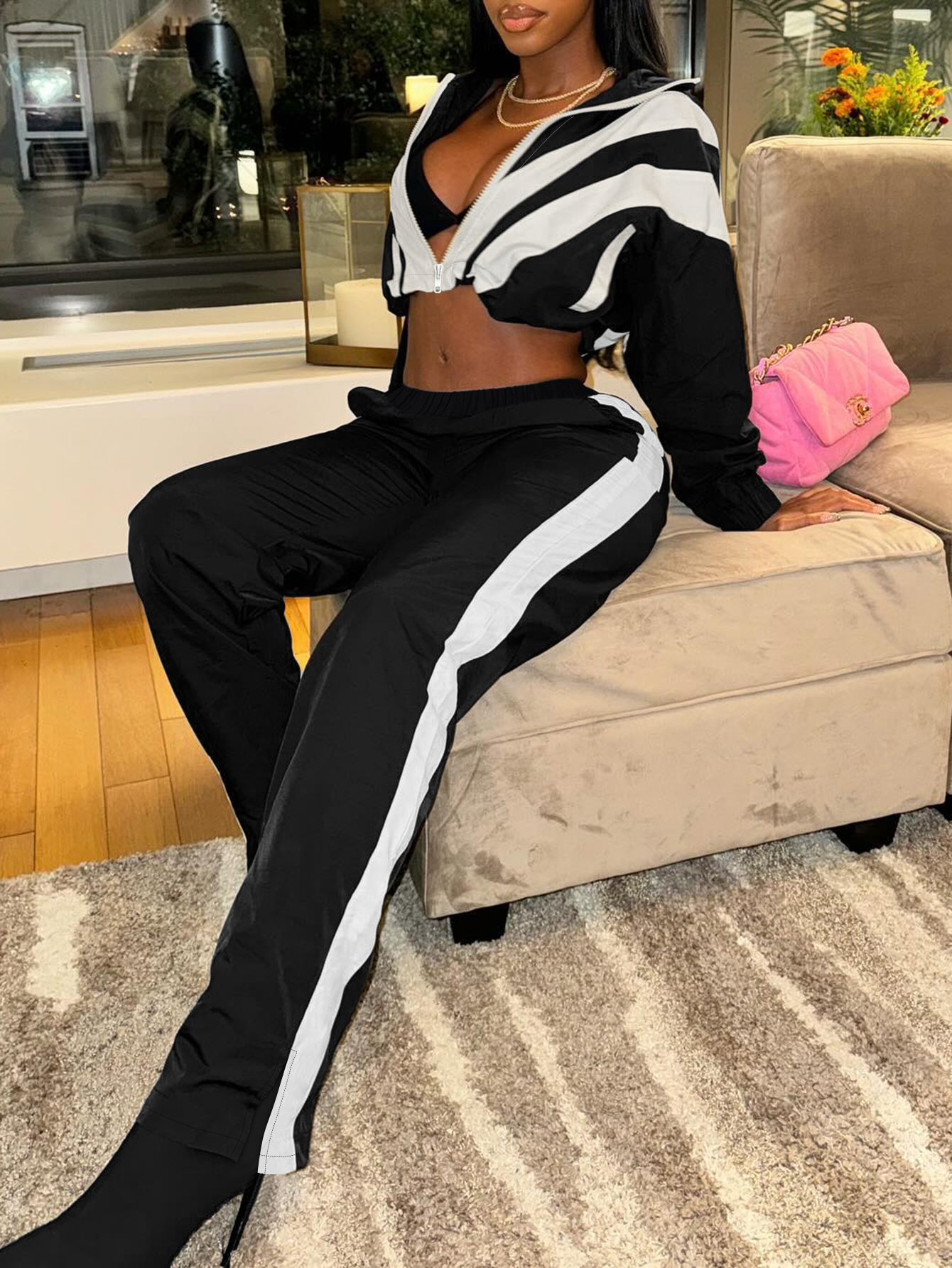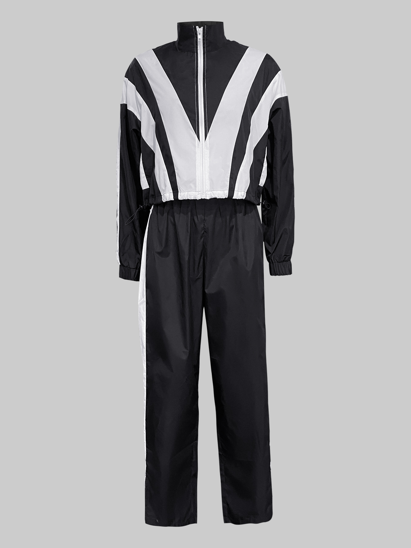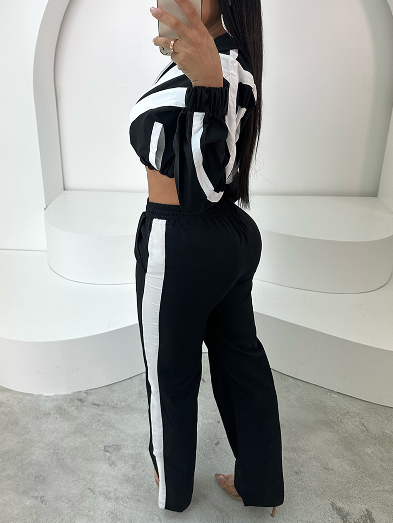 Buy LW Casual Tatting Turndown Collar Patchwork Color Block Long Sleeve Two-piece Pants Set for $26.00 at @ Lovelywholesale.com