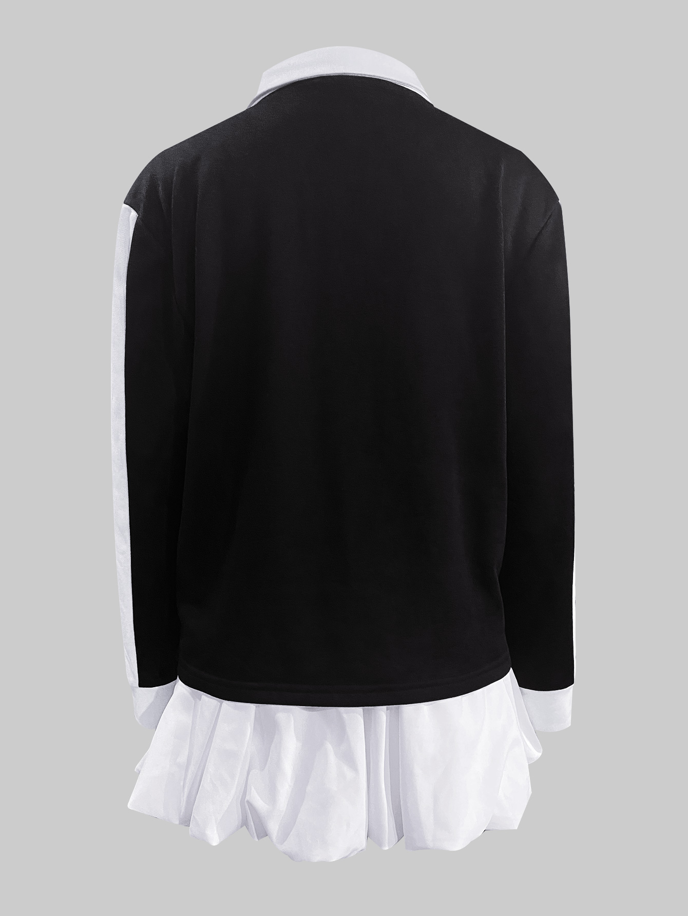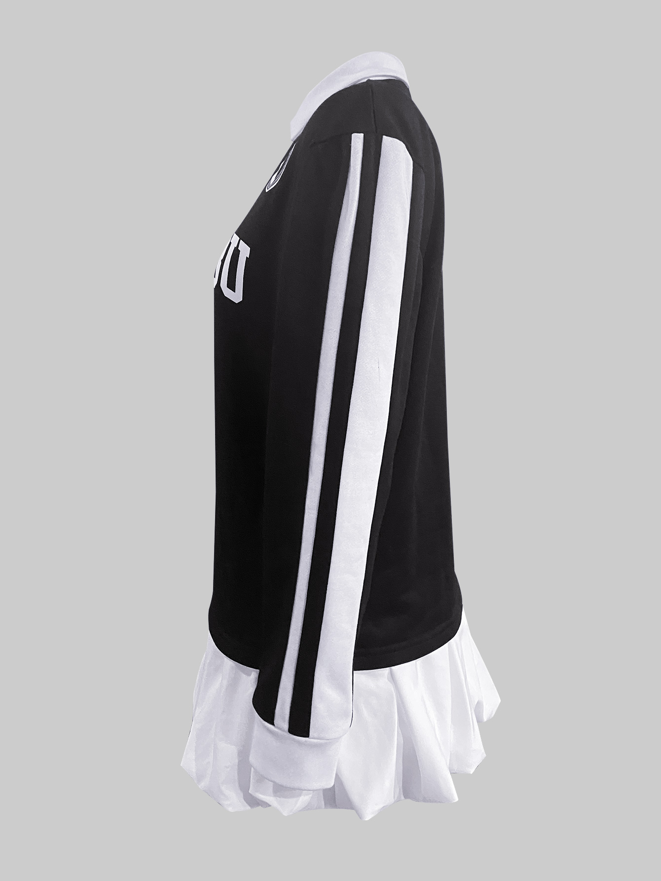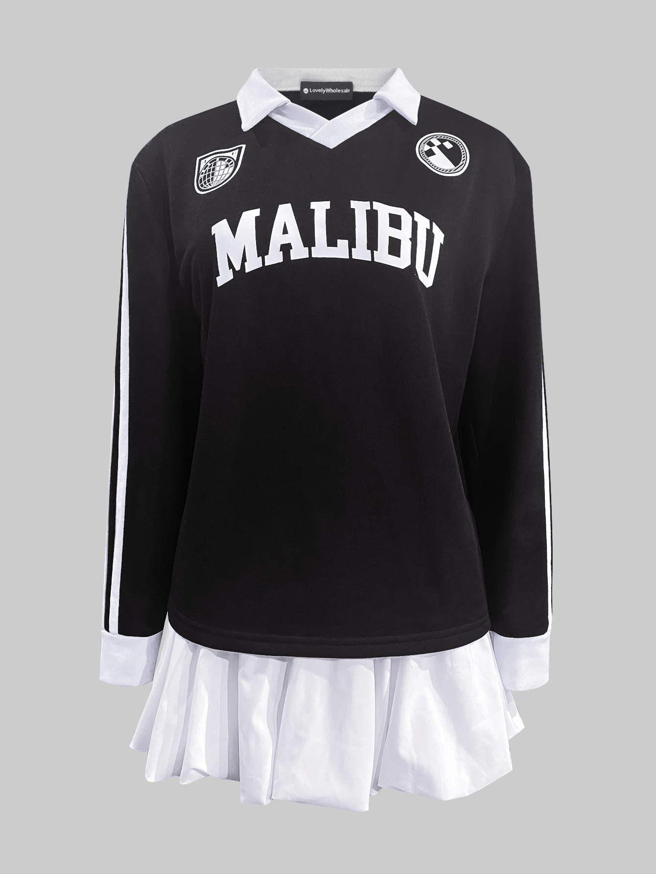 Buy LW Casual Tatting Sweat Turndown Collar Patchwork Letter Long Sleeve Two-piece Skirt Set for $27.59 at @  Lovelywholesale.com