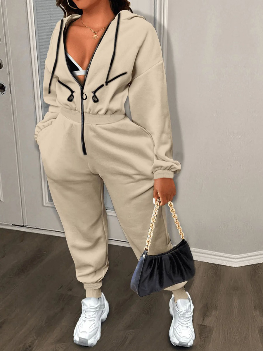 Buy LW Hooded Collar Zipper Design Jumpsuit for $17.39 at @ Lovelywholesale.com