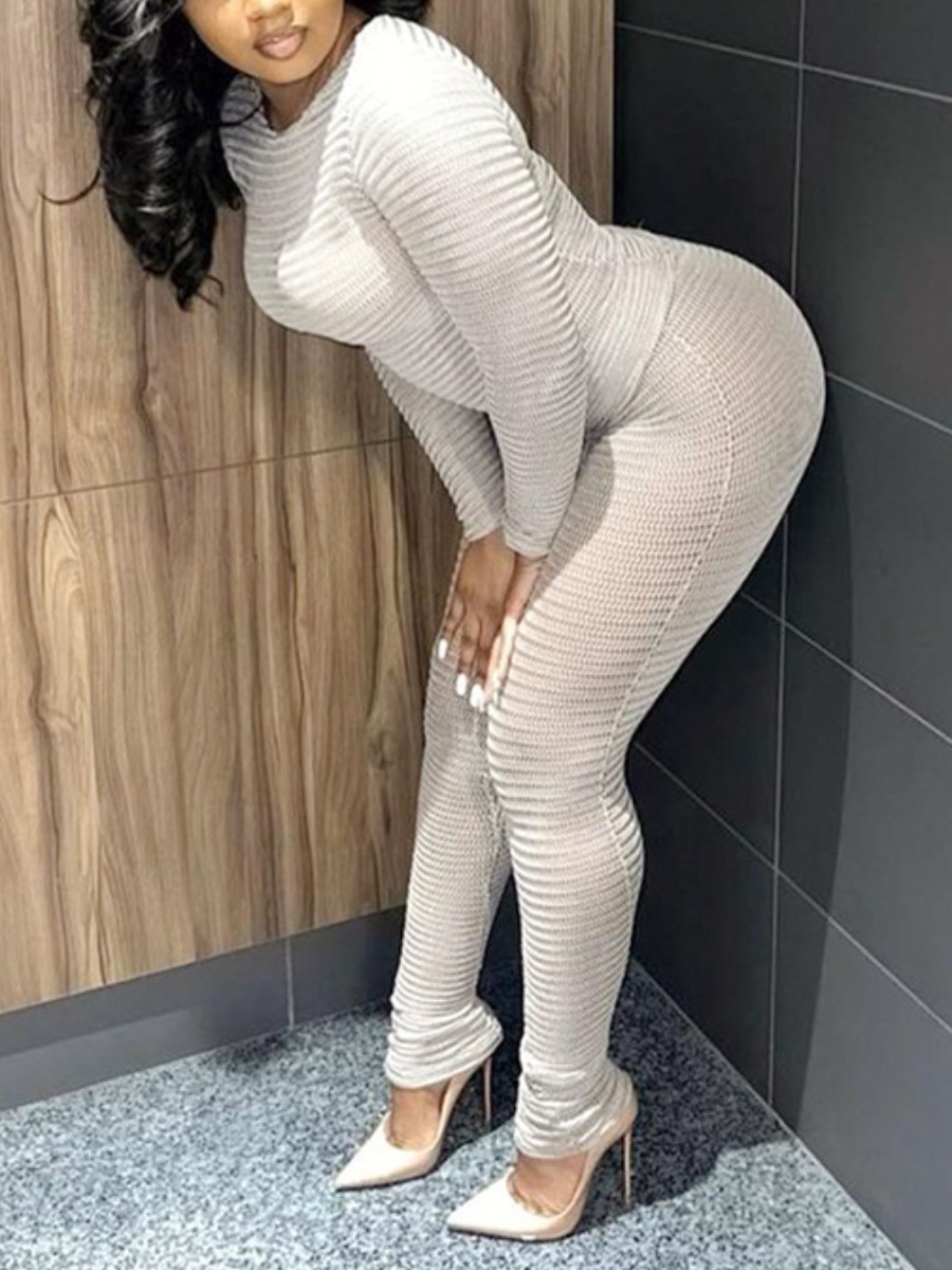 LW SXY Sxy Polyester Round Neck Solid Color Long Sleeve Two-piece Pants Set