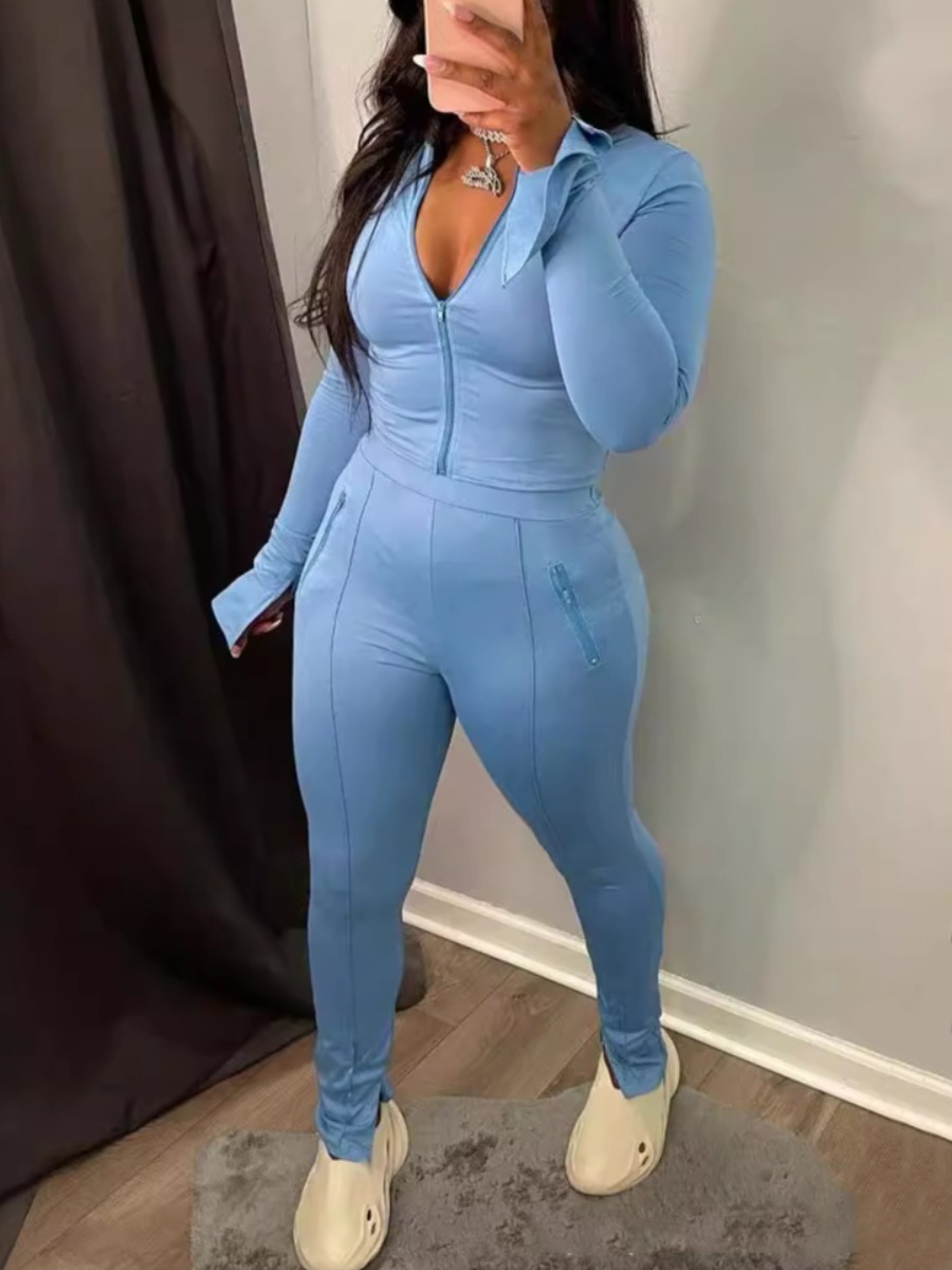 Buy LW BASICS Cardigan Solid Color Two-piece Pants Set for $8.24 at @ Lovelywholesale.com