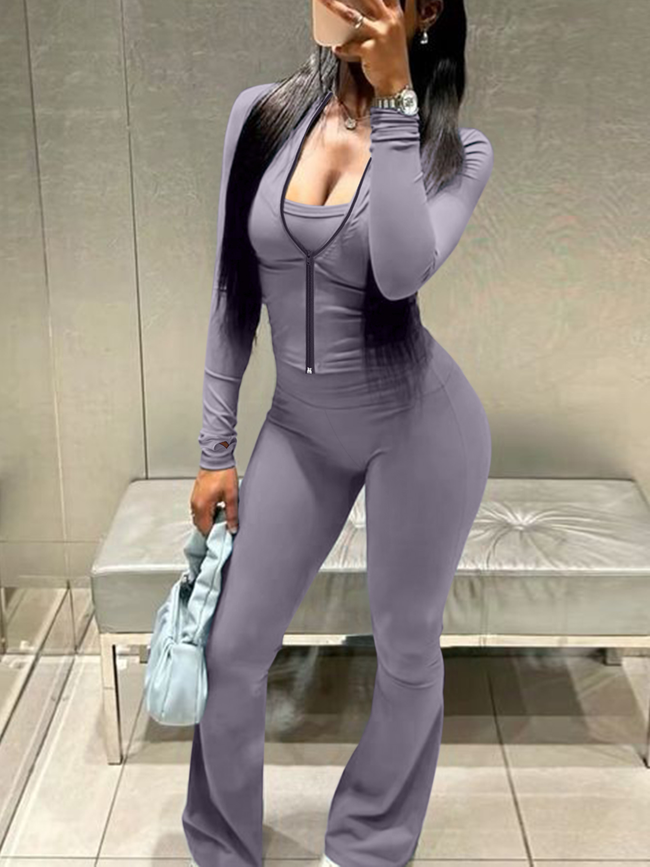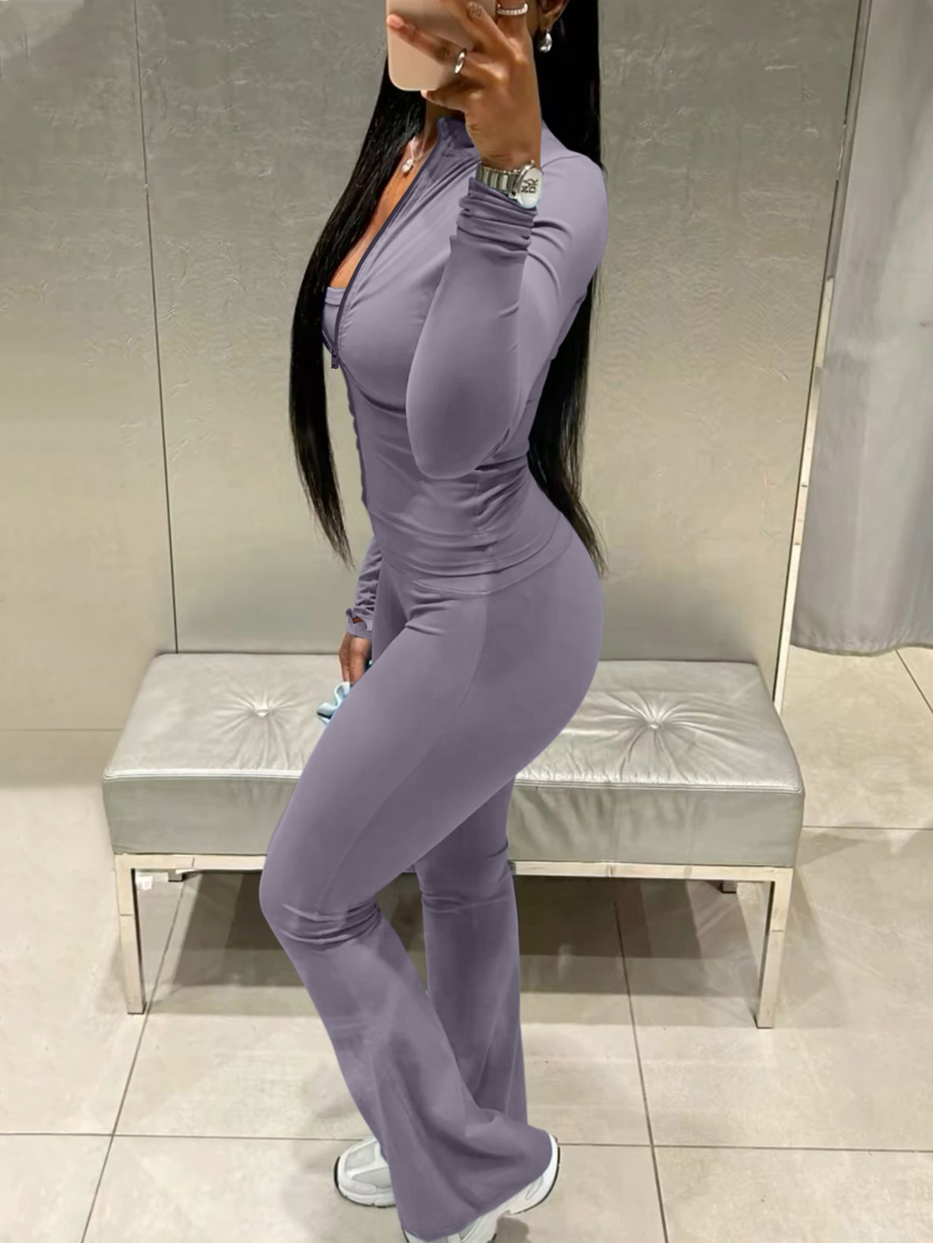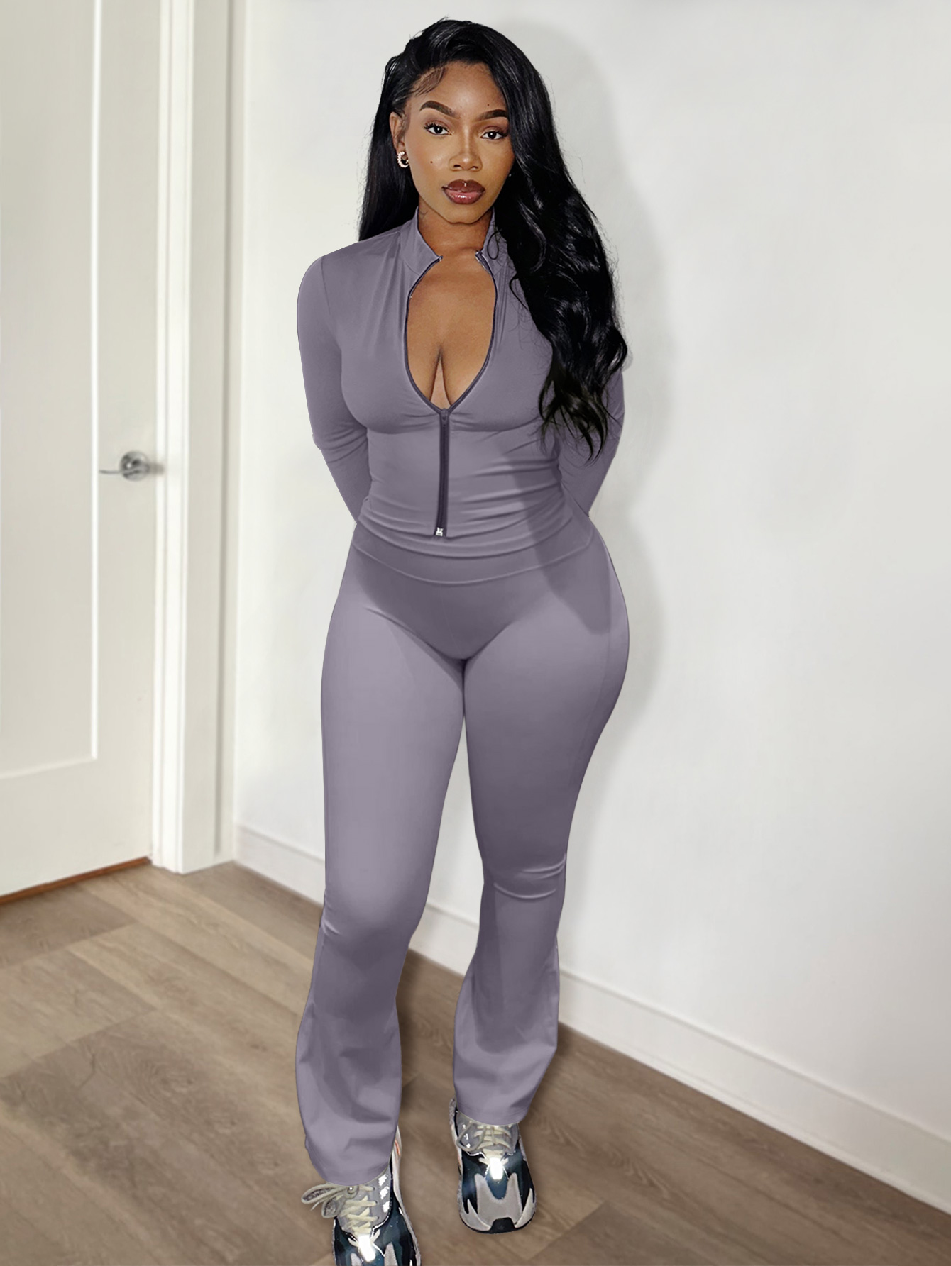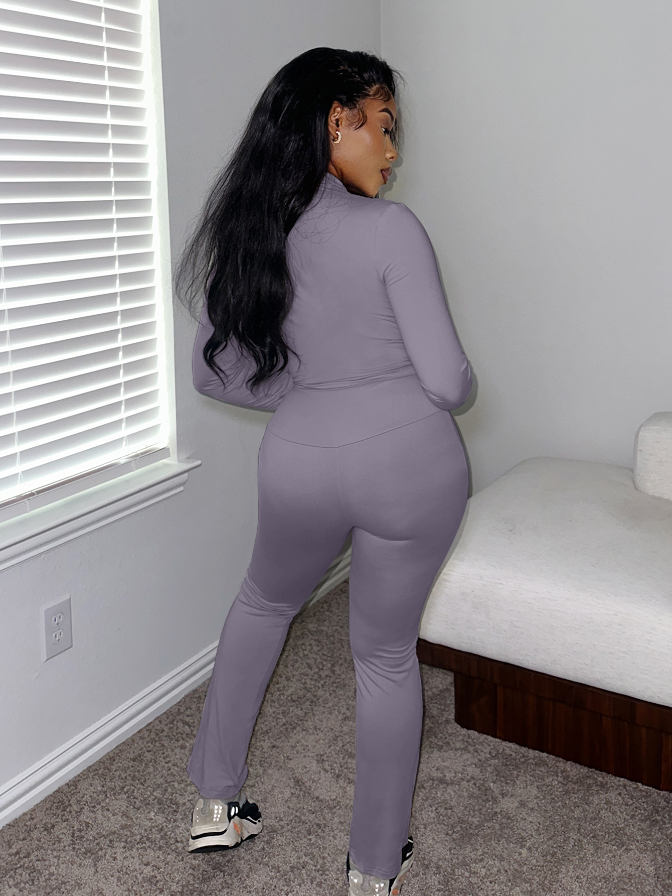 Buy LW BASICS Casual Milk Fiber Mandarin Collar Solid Color Long Sleeve Two-piece Pants Set for $18.59 at @ Lovelywholesale.com