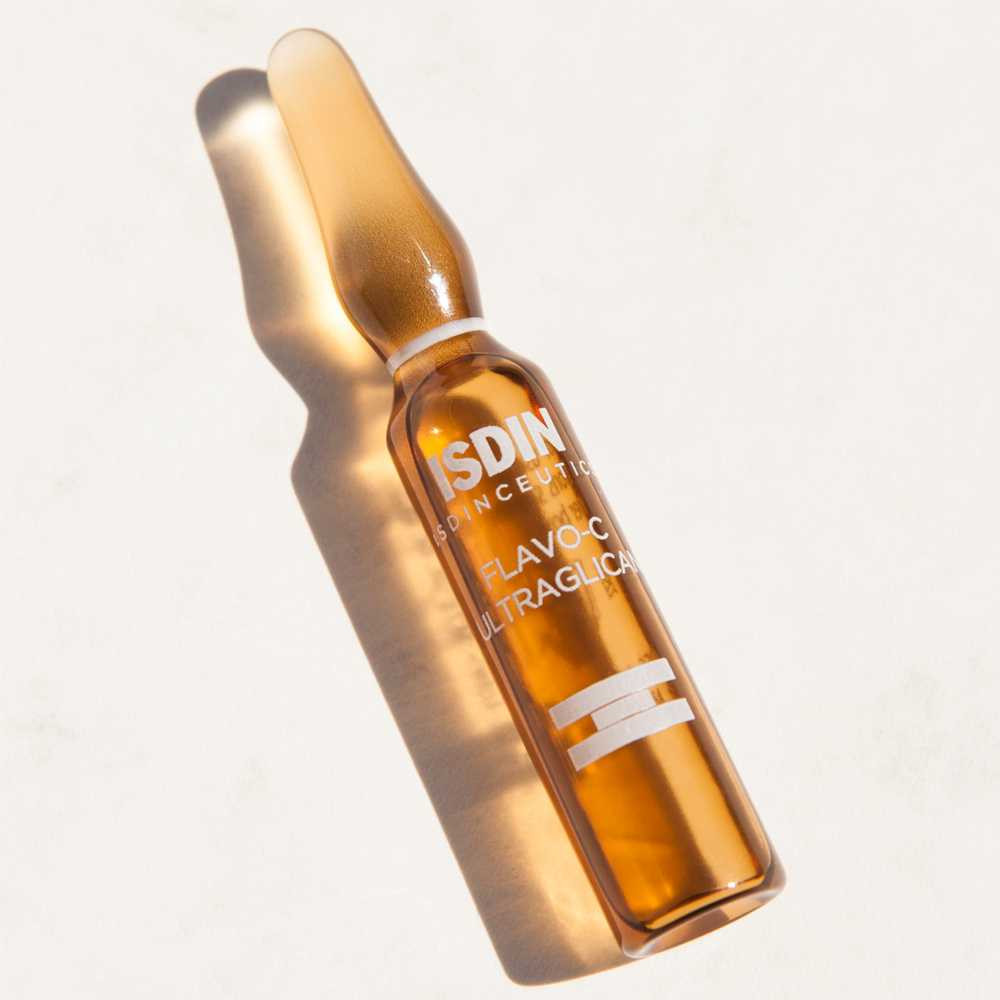 ISDIN ISDINCEUTICS Flavo-C Ultraglican Daily Antioxidant Serum offer a concentrated treatment that combines Vitamin C and Ultraglicans to protect and hydrate the skin. The powerful antioxidant properties of Vitamin C help to brighten the skin reduce pigmentation and shield it from environmental stressors. Ultraglicans enhance skin hydration and improve elasticity leaving the skin feeling plump and smooth. These ampoules are designed for daily use delivering a potent boost to maintain a healthy radiant complexion. With regular use ISDIN Flavo-C Ultraglican Serum help reduce the appearance of fine lines and promote a more youthful glowing look. Benefits: Protects: Formulated with potent antioxidants to help protect skin against oxidative stress and fight the visible signs of skin aging. Moisturizes: Provides deep lasting moisture care boosting hydration and giving skin a natural glow. Illuminates: Restores elasticity and returns brightness to dull tired-looking skin for a radiant even complexion. How to Use: Individual sealed glass ampoules help prevent vitamin C oxidation. Step 1: Shake -Take the ampoule from the box and shake gently before use Step 2: Open - Insert the ampoule into the protective tube and break it open Step 3: Prepare - Place the ampoule into the special applicator tip and remove the cap Step 4: Apply - Massage of the serum over face neck and neckline avoiding the eye area [ ] [ 30 ].