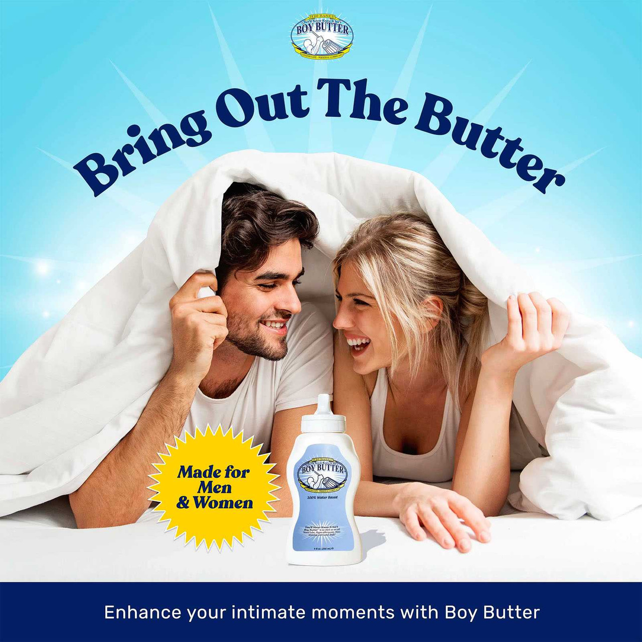 Boy Butter H2O is a premium water-based lubricant for men featuring a water-based cream formula enriched with Vitamin E and Shea Butter. This organic creamy lubricant is safe for both men and women. The formula is non-greasy clear upon application and is safe for use with toys latex and other uses. It is also edible and hypoallergenic. Boy Butter H2O is long-lasting gentle washable and can even double as a moisturizer or massage lotion. Benefits : Latex Safe Safe for both men and women Non-Toxic Edible Hypoallergenic Gentle and Non-Staining Safe for all types of toys (Rubber Glass and Silicone) 100% Washable from skin and fabric with water alone [16oz tub] Directions: Apply to areas where additional lubrication is desired. Q: What is the main base of Boy Butter H2O lubricant? A: Boy Butter H2O is a water-based lubricant featuring a formula enriched with Vitamin E and Shea Butter. Q: Can Boy Butter H2O be used with latex condoms? A: Yes Boy Butter H2O is latex safe and can be used with latex condoms. Q: Is Boy Butter H2O suitable for use with sex toys? A: Absolutely it is safe for use with all sex toys including those made of rubber glass and silicone. Q: Can Boy Butter H2O be easily cleaned from skin and fabrics? A: Yes it is 100% washable with water alone from both skin and fabrics. Q: Are there any allergenic ingredients in Boy Butter H2O? A: Boy Butter H2O is non-toxic and hypoallergenic making it safe and gentle for use.