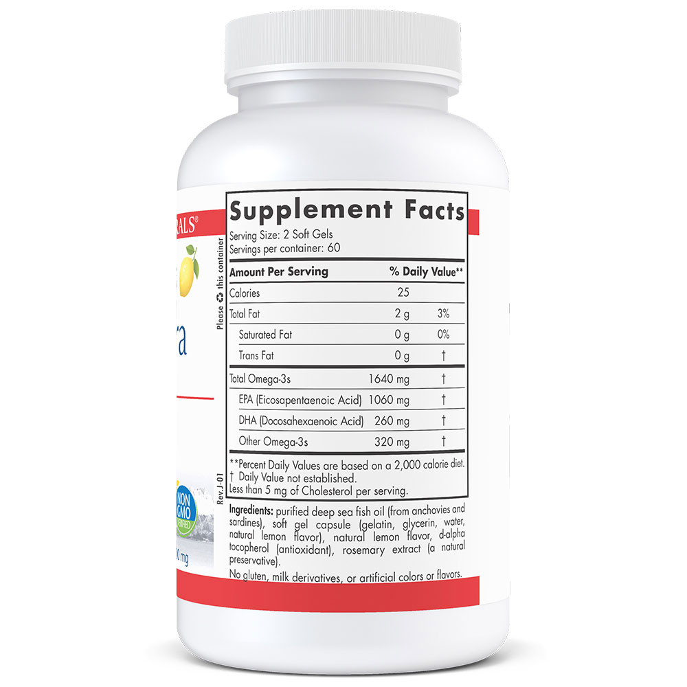 Nordic Naturals ProEPA Xtra in a delightful lemon flavor is the ultimate companion for those seeking to support their heart brain and overall health! With a potent blend of concentrated omega-3 fatty acids these soft gels offer a remarkable dose of EPA and DHA delivering countless benefits wrapped in a burst of citrus goodness. Imagine adding a splash of zest to your wellness routine while promoting cardiovascular function and cognitive vitality. Each easy-to-swallow gel lets you embrace optimal health and well-being without sacrificing taste. It's like sunshine for your insides! Benefits: Heart Health: Supports cardiovascular function and healthy blood lipid levels. Brain Function: Promotes cognitive health and mental clarity with essential DHA. Immune Support: Bolsters the body's defense system with anti-inflammatory properties. High Purity: Distilled for purity to ensure no harmful contaminants. How to Use: Dosage: Take two soft gels daily with food. Storage: Keep in a cool dry place away from light. Precautions: Read the ingredients list and instructions on the bottle and consult a healthcare professional before using this product especially if you are pregnant nursing taking other medications or have a pre-existing medical condition. Do not exceed the recommended dosage.
