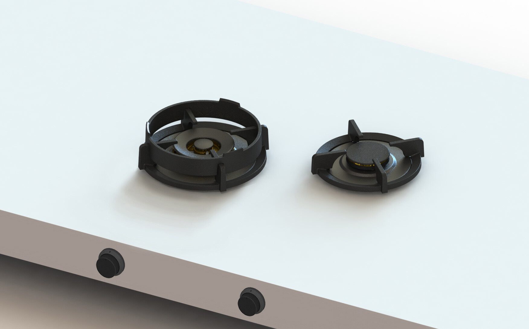 24" Modular Gas Cooktop with 2 Burners, Automatic Spark Ignition, Double-Enamel Cast Iron Pan Supports, Controlled Power, Easy-to-Clean Parts, Safety Shut-Off Control and Handmade in Holland: Brass / Front Knobs / Natural Gas. With a multi-functional brass burner designed for both low and high powered cooking, you can quickly and easily switch between frying, simmering or roasting. There is always sufficient space for your pans. The different parts of the burner can be separated and cleaned. No raised corners, just a flat countertop to clean. The possibility to create your ideal cooking set-up that fits the available space in your kitchen and your personal cooking style. PITT Cooking America will work with any countertop besides wood. This Dutch innovation has passed a long and solid test phase, with very positive results. During use, the temperature of the countertop will remain low and there will be a minimal transfer of heat. Utilizes a pilot-thermocouple 100% safety shutoff. Each individual cooking system is being hand-assembled in a production hall in a small village, close to Utrecht. No machine involved. More space for larger pots. Powerful burners. Automatic Spark Ignition. 5-year full warranty. Burners: 1x 1024 - 10236 BTU - 1x 682 - 17061 BTU. Controls: Front Side. Module dimensions (LxDxH): 19 13/16" x x 3 1/2". Minimum Countertop Depth: 23 5/8". Minimum Cabinet Width: 23 5/8". Countertop Thickness: 5/32" - 1 3/8". Minimum C-Measurement: 1 31/32. Support Bar Needed: Yes. Automatic spark ignition: Yes. Flame protection: Yes. Weight: 48 1/2 lbs. Shipping Weight: 55.12 lbs. Wok ring: Yes.