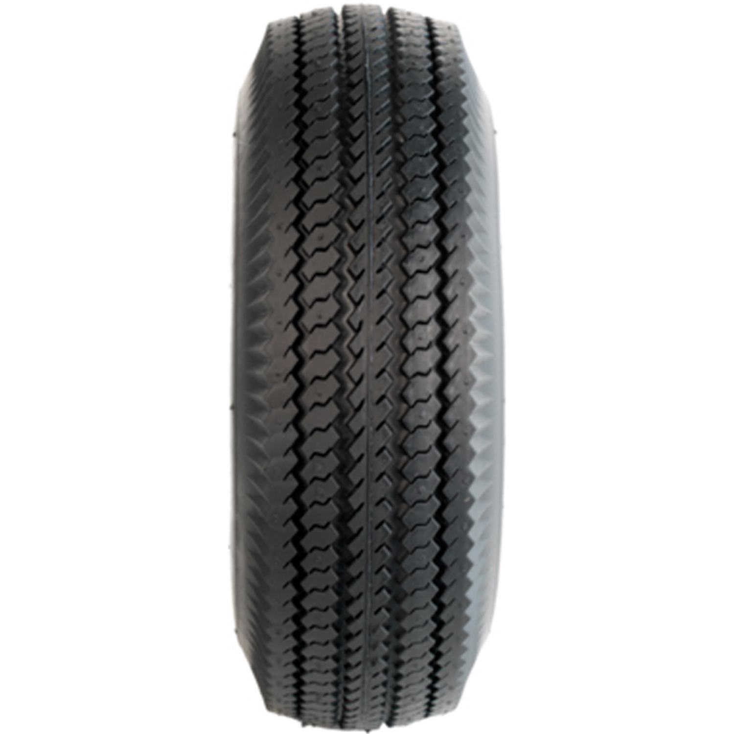 GreenBall Sawtooth. FEATURES AND BENEFITS: Enhanced durability; Turf friendly drive; All season traction; . OVERVIEW: The GreenBall Sawtooth is an all season tire manufactured for lawn mowers and other garden equipment vehicles, such as hand trucks, dollies or small utility trailers.The tire promotes great all weather traction. The flat footprint with the zigzag rib pattern enhances the dry, wet and winter road gripping capability. The tread design's elements firmly grip the road surface throughout the year, while the special tire compound keeps its flexibility even in colder temperatures. The better traction enables the tire to perform well on all turf conditions.The tire's internal structure and constant turf contact boosts the durability and handling. The structure features a four ply construction that maintains the tire's optimal shape at all times. This allows the tire to perform to its highest capability throughout the year. The tread design's better surface contact improves the steering responsiveness and driving stability. The steering becomes faster and more precise, while the structure is stabilized against the driving pressure affecting it.The Sawtooth guarantees a smooth performance. The tread design's non-directional pattern closely follows the road surface and increases the driving safely. The flat non-directional footprint manages to perform in a manner that does not damage the turf and grass field while the tires are in motion. This results in a turf friendly driving experience.This is a bias ply tire. Due to the tire's internal construction and size, it is possible that the tire will look deformed. Smaller bias ply tires do not have reinforced constructions that can keep the tire from deforming. The bias construction and the small tire's non-reinforced internal structure allow the tire to fold in when it is deflated or not properly inflated. This is not constructional damage or an issue; it is a normal occurrence with such tires. In such cases, the tire needs to be mounted and inflated to the proper PSI or, in some instances, an inner tube needs to be added. The proper PSI and the inner tube are able to maintain the tire's ideal shape, preventing the bias plies from looking deformed. This ensures their performing safety and durability. The photo is a representation of the tire's possible deformation, it does not represent the specific tire model, size, tread pattern and application. This specific tire model features a BIASED ply construction. Manufacturers recommend changing tires every 10 years. As long as tires are properly stored before they are sold, the year of their manufacture will not shorten their service life.