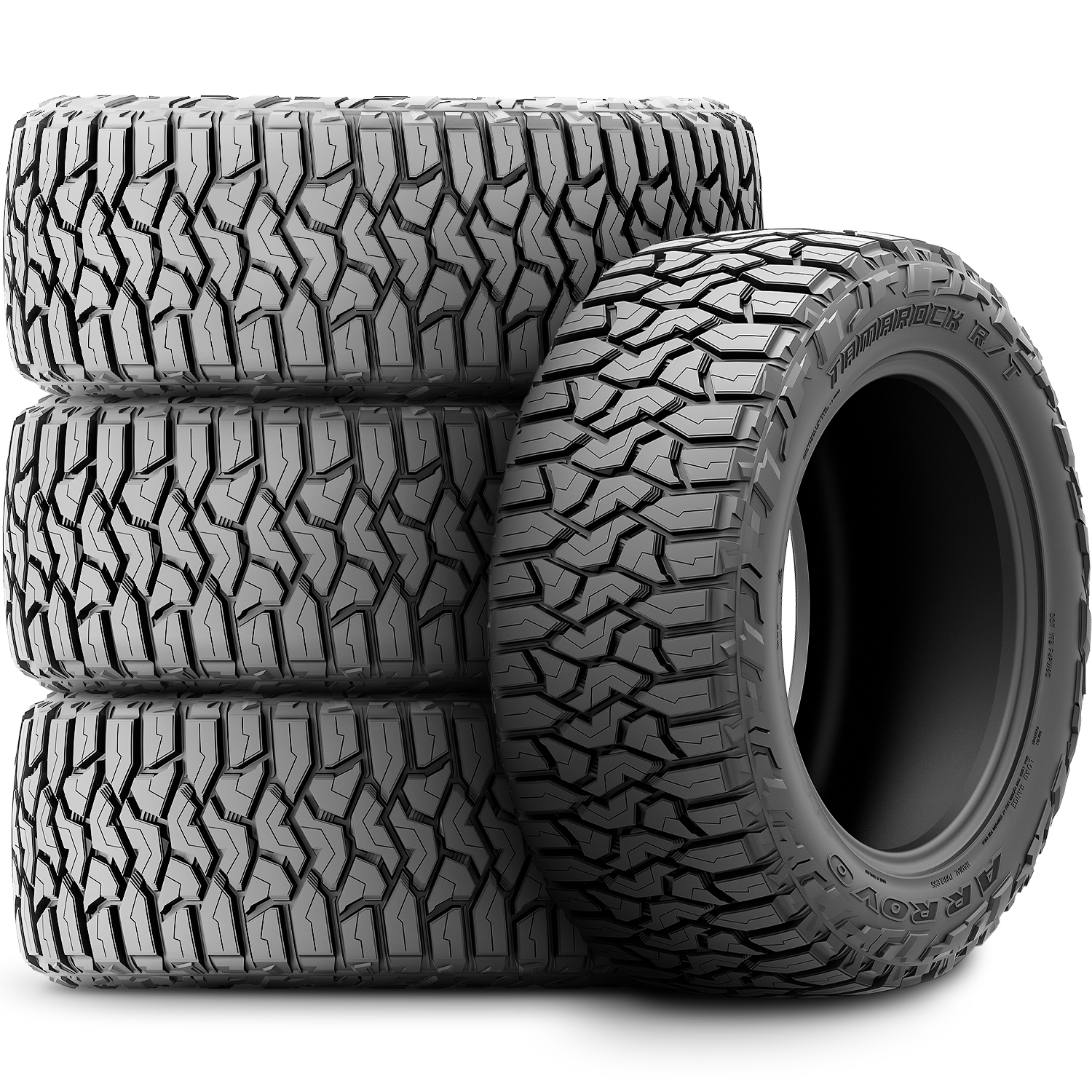 Arroyo Tamarock R/T. FEATURES AND BENEFITS: Rugged terrain traction; Improved controllability; Damage resistance; All season traction; . OVERVIEW: The Arroyo Tamarock R/T is a rugged terrain, all season tire made for light trucks. Arroyo offers a 55,000 mile treadwear warranty with this model.The model offers great rugged terrain traction. The optimized tread elements and the durable rubber compound enable the tire to perform on harsh and rocky terrains. The large staggered blocks firmly grip the surface with extra biting edges, maintaining forward motion at all times. At the same time, the model manages to keep the footprint clean. The ideal tread elements, with the wide grooves, effectively eliminate mud, snow, and rocks stuck between the tread elements for better surface contact. It also prevents stone retention from harming the tire's casing during the performance.Additionally, the aggressive tread design and its close surface contact improve the tire's controllability. These elements keep the road contact, which upgrades steering responsiveness and driving stability. In other words, the steering response time is faster and more precise to the driver's commands, while the structure is secured against driving pressure. Cornering and maneuvering are upgraded too. These elements ensure the driver's full control over the vehicle and guarantee a safe driving experience.Excellent driving durability and damage resistance are provided with this tire. The reinforced internal structure manages to keep the ideal tire shape under load and driving pressure. This improves the tire's load-carrying capacity and withstanding ability. On the other hand, the concave and convex sidewall and the special silica compound protect the tire against external damage, such as punctures, cuts, and tearing.The Arroyo Tamarock R/T boosts its year-round performance. The aggressive tread design and the all season compound enhance the tire's dry, wet, and winter-weather grip. In this manner, the tread pattern maintains surface contact in different weather conditions, while the silica compound keeps the rubber flexible in warm and cold temperatures. These elements enable the tire's safe performance throughout the year.Manufacturers recommend changing tires every 10 years. As long as tires are properly stored before they are sold, the year of their manufacture will not shorten their service life.