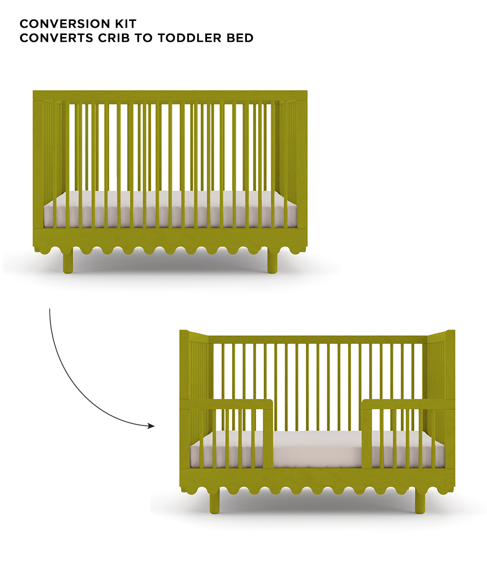 The Oeuf Moss Conversion Kit is the perfect match to your child's newfound sense of independence. The low mattress position enables easy access and allows your child to climb in and out on their own. Features Side rails prevent night time falls; Converts back to Moss Crib simply by replacing a crib side panel; Comfortable sleeping for your child until age 6 ; Specifications OVERALL DIMENSIONS 53 _" x 32 "; OPENING WIDTH: 17 _"; Birch Conversion Kit Made of solid birch and Baltic birch plywood; Painted Conversion Kit Made of solid birch and Baltic birch plywood; All finishes are non-toxic, water-based and free of VOC health hazards ; Packaging made of recycled cardboard; Responsible recycling through licensed collecting facilities ; Sustainably produced in Europe;.