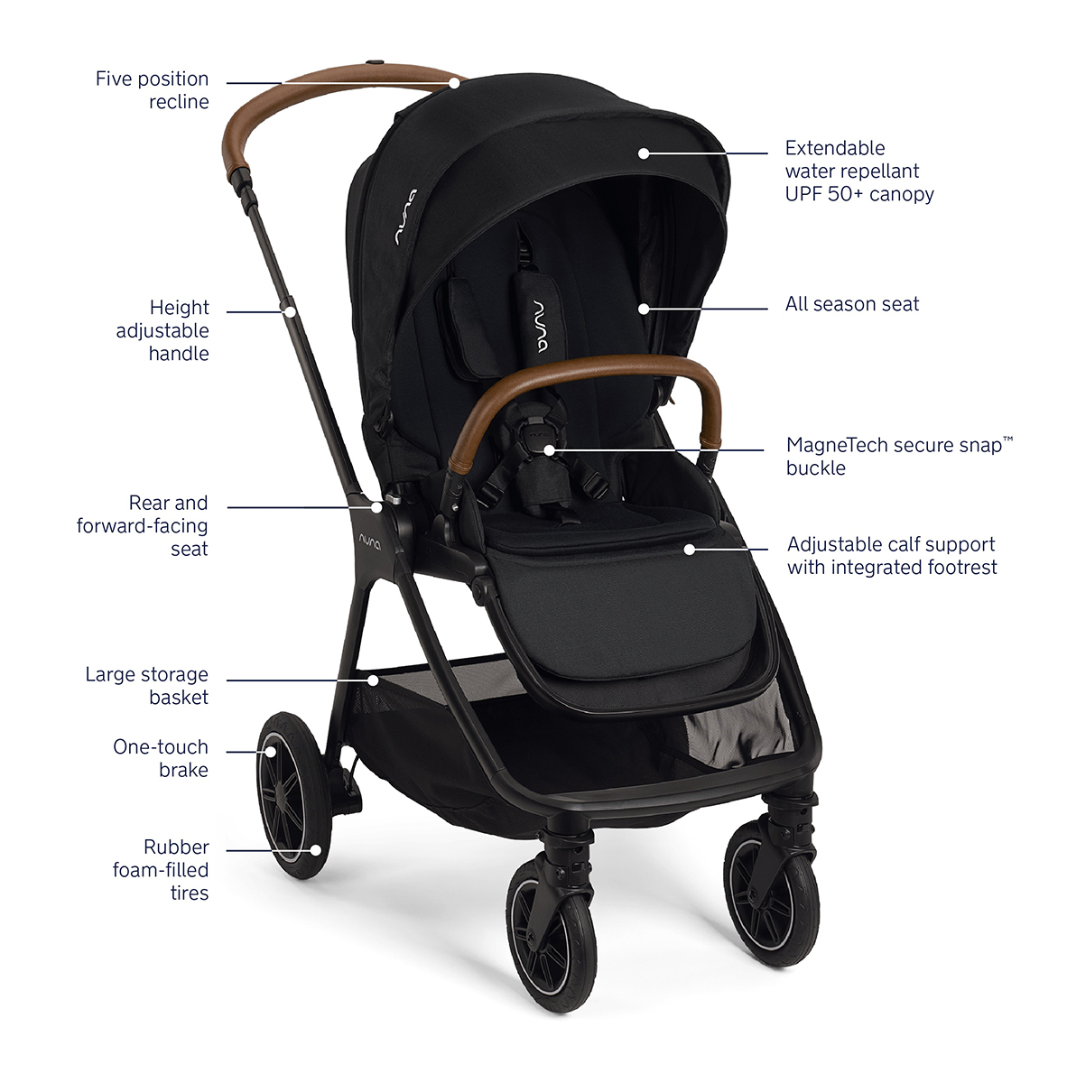 Together, the PIPA urbn infant car seat & TRIV next stroller create a next-level travel system where advanced safety and full-featured luxury features come together in a lightweight package that moves you and baby seamlessly through the suburbs and to the city. Your everyday travel companion meets modern rides, reimagined. The Nuna TRIV next stroller features all-wheel suspension, a one-touch braking system, and large rear wheels that promise easy maneuverability through varied terrain. This compact fold stroller is cleverly designed with a seat that faces and folds both ways and offers all-season comfort. It keeps baby snug in winter and converts to breathable mesh in summer, while the included rain cover provides extra protection no matter the weather. It is designed to effortlessly connect with the PIPA urbn to make your everyday outings so much easier. TRIV Features: Spring suspension technology under the seat for smooth rides; Water-repellent UPF 50+ canopy is extendable and features a flip out eyeshade and window; Easy access zippered storage pocket and oversized shopping basket for all the essentials; One-hand on-the-go recline and height adjustable pushbar; Quick-release, five-point no-rethread harness converts to a three-point harness; All-wheel suspension and one-touch rear brake allows for easy stop and go with just a simple top tap; Swivel-lock front wheels; 3-position recline and adjustable calf support for child's comfort; All-season seat keeps baby cozy in winter and easily converts to mesh in summer; Luxe leatherette accented pushbar and removable armbar lend style to your stroll; Removable insert is lightweight and lightly textured with Merino wool and TENCEL* lyocell (*TENCEL is a trademark of Lenzing AG); Rubber tires are tough, foam-filled and ready for any terrain; Specifications: STROLLER DIMENSIONS: 37 L x 22.5 W x 42.25" H; FOLDED DIMENSIONS: 24 L x 22.5 W x 15" H; STROLLER WEIGHT: 18.40 lbs. (Without insert, arm bar, or canopy); RECOMMENDED USAGE: Up to 50 lbs.; PIPA Urbn Infant Car Seat The Nuna PIPA urbn reimagines the future of travel with baby. This one-of-a-kind, ultra-lightweight infant car seat weighs only 7 pounds* and installs using the advanced pipaFIX rigid latch. This groundbreaking baseless installation feature is integrated into the car seat, allowing for super secure installs in seconds when moving from car to taxi, to rideshare and offering a new generation of journeys. It also features a one-handed, quick release from stroller and vehicle and Nuna's iconic Sky drape for ultimate privacy - so you and baby can navigate life with modern-day ease. Features: 2-second* steel-reinforced pipaFIX rigid latch installation makes set up swift, simple and above all-safe; Ultralight for on-the-go at just 7 lbs**; Travel with ease with pipaFIX or vehicle seat belt-no base needed; One-handed vehicle and stroller release for quick and easy in-and-outs; Auto-reclining foot that aids in proper installations in vehicles; European belt path for vehicle belt installations; Aeroflex foam that is cleverly lightweight, resilient, and minimizes force transferred to baby by absorbing and diffusing energy; Side Impact Protection for ultimate baby safe keeping; Five-point harness keeps travels secure; Sky drape pulls down smoothly and attaches quietly with magnets; Full-coverage UPF 50+ canopy is extendable and features a flip-out eyeshade and XL peek-a-boo window; From fabric to foam and beyond, each element is smartly sourced to be both flame resistant and contain no added fire-retardant chemicals; Integrated magnetic buckle holders help keep straps out of the way when buckling baby in; Head support includes a 2-layer soft surround to accommodate smaller babies; Infant head support and body inserts feature environmentally friendly Merino wool and TENCEL *** branded lyocell fiber blend that is soft, naturally controls moisture, and is environmentally friendly; Machine washable seat fabrics and inserts; Luxe leatherette carry handle for stylish journeys; GREENGUARD Gold certified - products that have achieved GREENGUARD certification are scientifically proven to meet some of the world's most rigorous third-party chemical emissions standards, and certified to not contribute to indoor air pollution or chemical exposure; FAA certified for aircraft use; Not compatible with PIPA series base or RELX base; Set of included anchor guides make it easy to locate and install on the lower anchor bars in vehicle; Specifications RECOMMENDED USE: 4-22 lbs; less than 29"; WEIGHT: 7 lbs (Without canopy or insert);.
